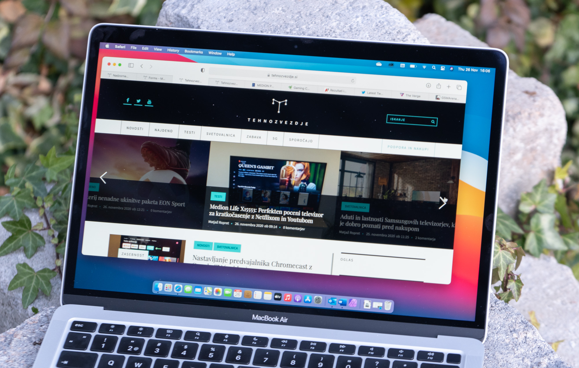 Morda kdo še ni povsem doumel, zato še dodatno poudarim. Novi Macbook Air s procesorjem M1 je prenosnik, kakršnega smo si ves čas želeli. Majhen, tanek in lahek, izjemno zmogljiv in dolgim trajanjem baterije. Na njem se da početi bolj ali manj vse, vključno z resnim montiranjem videa, grafičnim oblikovanjem, modeliranje, obdelovanjem fotografij, programiranjem in ostalimi naprednimi nalogami. Za običajno brskanje po spletu, pisarniško uporabo in podobno je pravzaprav preveč zmogljiv, a prav zato je z njim užitek delati. Kakšne resne potrebe za preskok na dražji Macbook Pro ni, kajti v najboljšem primeru bi opazil za deset odstotkov hitrejše izvajanje določenih dolgotrajnih opravil pri polnih obremenitvah (denimo pri polurnem izvozu videa ali obdelovanju 3D-modela), kar počne peščica uporabnikov. Prav tako ni veliko razlogov za doplačilo dodatnega pomnilnika, saj 8 GB zadošča. Kvečjemu se splača poseči po različici s 512 GB diska namesto osnovnih 256 GB. Vse našteto pomeni, da Macbook Air ob približno enaki (celo malenkost nižji) ceni kot jo je ob prihodu na trg imel predhodnik s slabotnim Intelovim procesorjem i3, ponuja veliko večjo vrednost za denar. In je pravzaprav eden najboljših nakupov med prenosniki sploh, če ti le odgovarja sistem MacOS. Kajti za podobne zmogljivosti je treba drugod odšteti bistveno več in pri tem biti pripravljen na kompromise pri avtonomiji baterije ter segrevanju. Zgolj dva pomisleka imam, pa še ta dva nista posebej prepričljiva. Res pogrešam zaslon na dotik, ki ga večina verjetno ne bo, in malce me skrbi, kaj življenjska doba sistema na čipu. Kajti M1 ima razen diska integrirano praktično vse ostalo in če nekaj odpove, je celoten računalnik bolj ali manj za v smeti. Prepričan pa sem, da so v Applu to premislili in izvedli dovolj testiranj, tako da lahko pričakujemo dolgoletno uporabo teh prenosnikov z res obilo zadovoljstva.