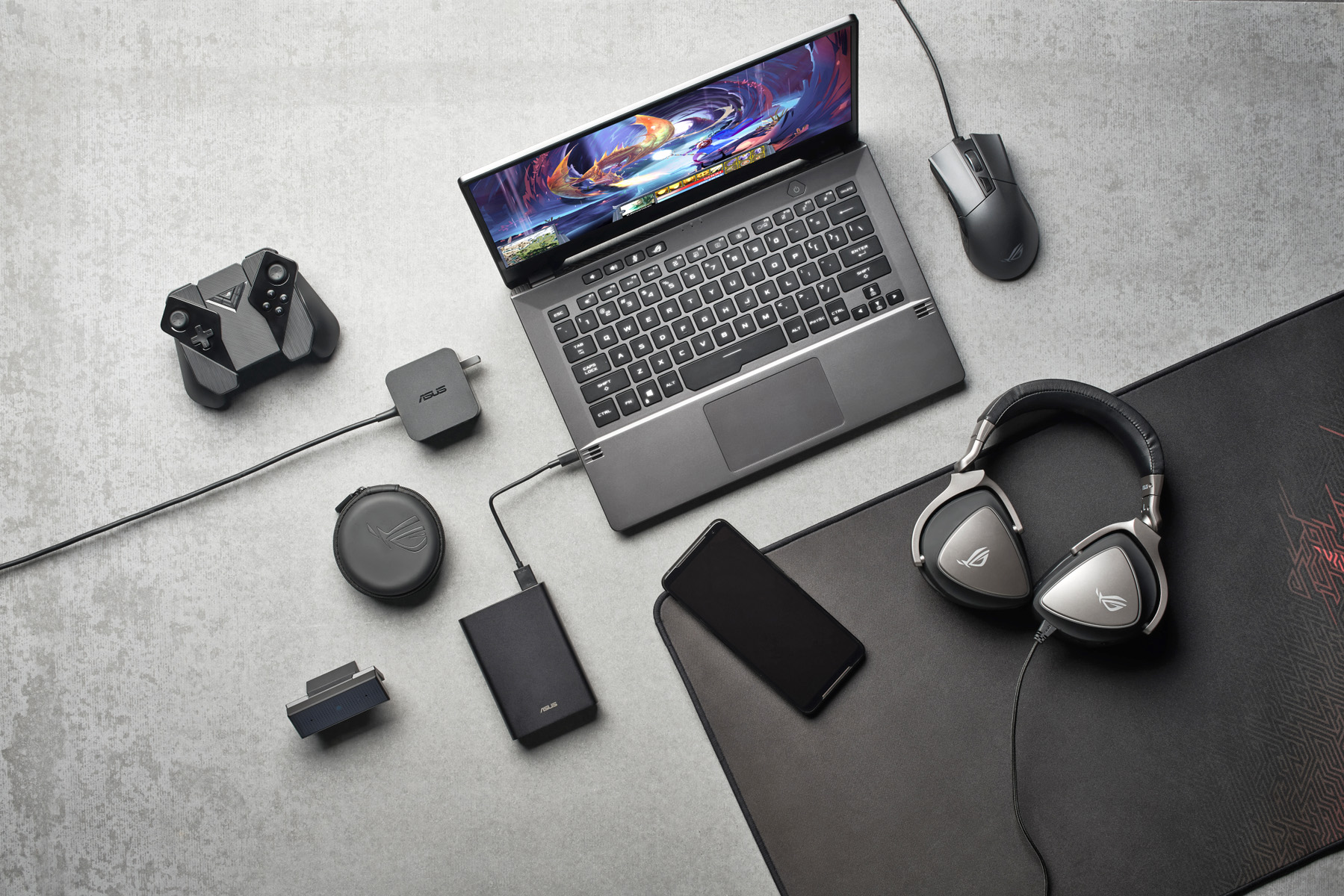 Ta prenosnik je morda največja novost pri Asusu. Čeprav na pogled deluje kot dokaj običajen model z vrtljivim 13,3-palčnim zaslonom (denimo Zenbook Flip 13), je tudi to igričarska naprava. Ima AMD-jev procesor Ryzen HS, s čimer je podobno zmogljiv kot Zephyrus G14, zraven pa je še grafični čip Nvidia Geforce 1650. Ob zgolj 15,8 mm debeline in 1,3 kg mase je oboje kar malo presenetljivo. Zaslon je lahko polne visoke ločljivosti (pri razmerju 16:10) s 120-herčnim osveževanjem ali 4K pri 60 Hz. Tudi ta prenosnik omogoča polnjenje prek USB-C. Asus pa je razvil še lasten standard za zunanjo grafično kartico, ki tako omogoča osem »stez« PCIe, protokol Thunderbolt jih denimo štiri (40 Gb/s), zato je grafična kartica bolje izkoriščena. Izključno pretoku podatkov zanjo je ves čas namenjenih 67 Gb/s. ROG XG Mobile pa je majhno ohišje, ki bo skupaj s kartico in vgrajenim napajalnikom tehtalo vsega en kilogram. Tako bo vse skupaj mogoče pospraviti v nahrbtnik in oditi na igričarsko seanso.