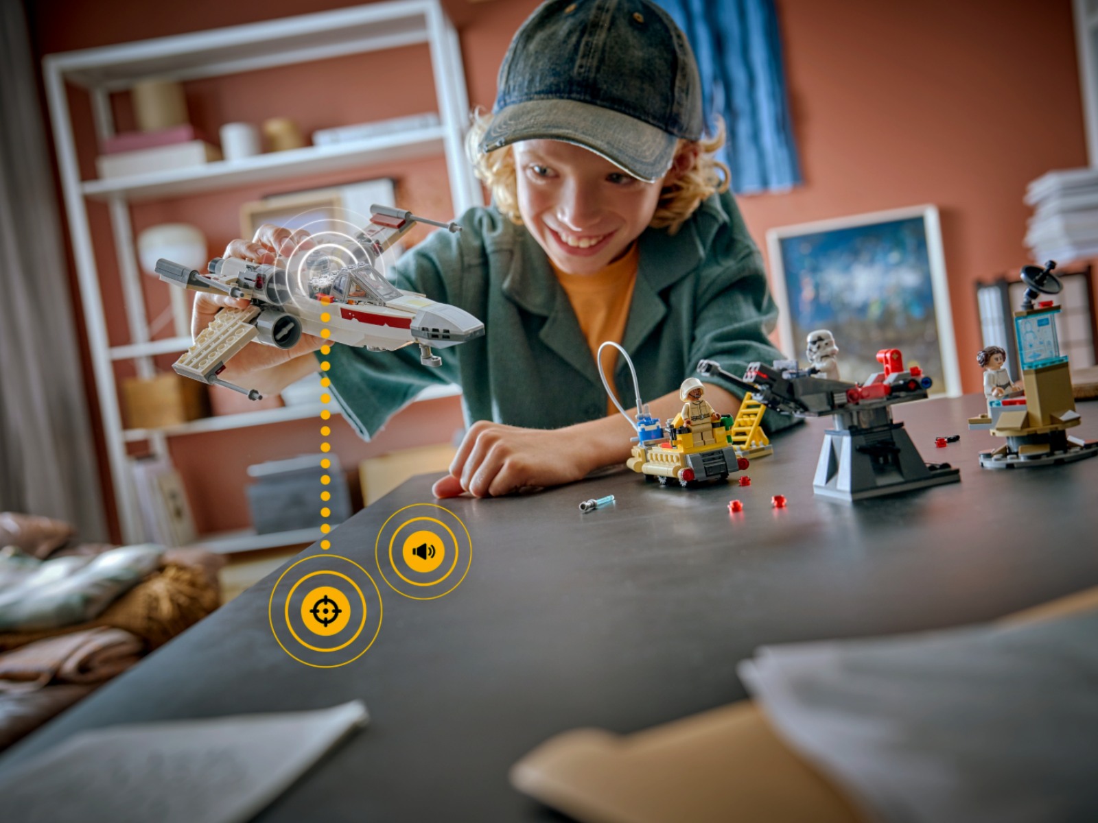 Prve pričakujemo marca in tudi ti bodo povezani z ikonografijo Vojne zvezd. Za približno 90 evrov bo na voljo ironična interpretacija Lukovega zvezdnega lovca X-wing (Red Five) iz dobrih 580 kock. Komplet bo vseboval pametni figurici Luka in princese Leje ter pet pametnih oznak oziroma ploščic za proženje svetlobnih in zvočnih učinkov. Istočasno bo na voljo še 70 evrov vreden 473-delni komplet Darth Vaderjevega TIE lovca z eno figurico in dvema pametnima ploščicama ter 962-delni, približno 160 evrov vreden komplet prikaza boja v prestolni sobi druge Zvezde smrti s figuricami Luka, Vaderja in Palpatina. Za zdaj še ni jasno, kdaj bodo kompleti na voljo v lokalnih trgovinah.