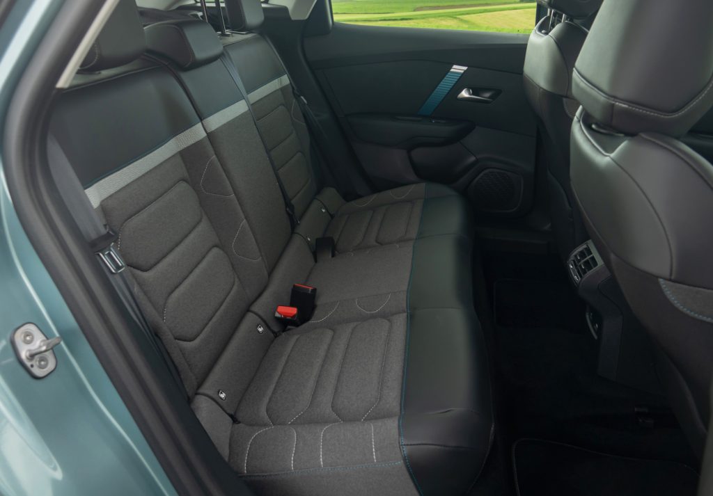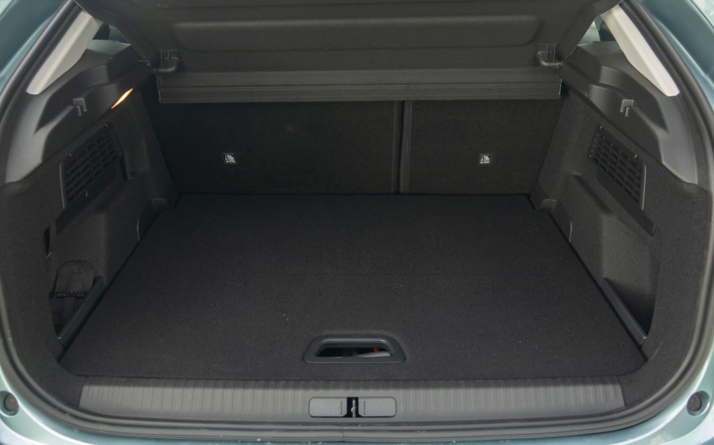Z novinca si nismo čisto na jasnem, ali je nastal na osnovi klasičnega C4 ali modela Aircross, vsekakor se po dolžini spogleduje s prvim, po višini pa z drugim. S 4,3 metre dolžine je že povsem spodoben avto nižjega srednjega razreda, četudi skupaj z Golfom na spodnjem koncu neprestanih dolžinskih prirastkov. Temu primerna je tudi medosna razdalja, ki znaša 2,61 metra, in pomeni mirnejšo vožnjo po naših cestah, ki so daleč od idealnih. Za potniški prostor je dobro poskrbljeno, tako na prednjih kot zadnjih sedežih, kjer je dovolj prostora tudi za višje osebe. V prtljažniku je 380 litrov prostora, kar je standardna številka za ta razred, a nikakršen presežek, če upoštevamo, da podobno dolg Peugeot e-2008 ponuja 55 l več. Nekaj lahko pripišemo daljšemu prednjemu delu, delno pa tudi na račun večje prostornosti v potniški kabini. Se je pa Citroen zato izkazal z različnimi mesti za odlaganje in predali. Recimo nosilec za tablico na sovoznikovi strani, predal za tablico, cel kup predalčkov v sredinskem delu in, kar danes ni za odmet, brezžično polnenje telefona.