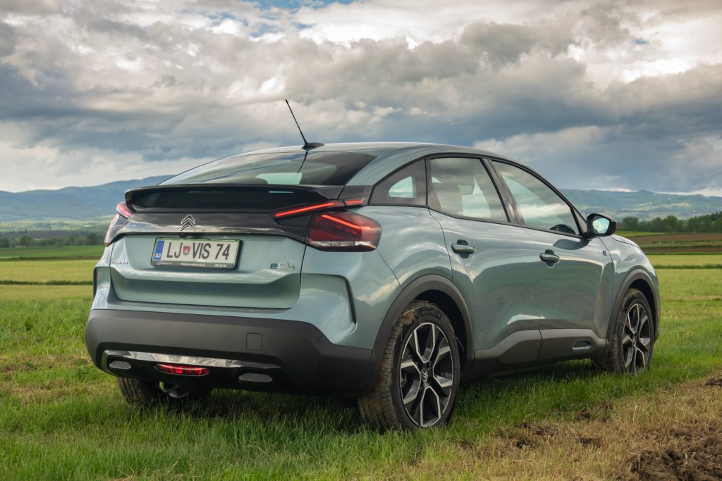 Zadnje presenečenje z e-C4 je bila vožnja. Pričakovali smo klasično Citroenovsko mehkobo, dobili nekaj veliko bolj podobnega nemški trdoti. In to nam je všeč. Avto se odlično pelje skozi ovinke, brez siljenja na nos, na račun dolge medosne razdalje tudi brez težav pobira neravnine na naših cestah. Od tal je dvignjen 15 cm, tako da lahko brez skrbi zapeljemo na kakšen kolovoz ali robnik, skratka vse, kar od mestnega športnega terenca pričakujemo. Seveda bi si želeli večjo kapaciteto baterije, a kljub temu bi ta morala zadoščati za dnevno migracijo in tudi kakšen izlet čez vikend. Osnovni model boste zasledili od dobrih 32 tisočakov naprej, kar je konkretno v domeni manjših električnih avtomobilov, recimo Peugeota e-208 ali Renaulta Zoe. Od obeh je večji in prostornejši, še najbolj konkurenčen mu je MG ZS EV, ki pa se počasi poslavlja. Tako opremljenega e-C4, kot je bil testni, bi se s popusti (še pred subvencijo) dalo dobiti za približno 35 tisoč evrov. Vsekakor spodoben družinski avto, če se ravno ne misite tedensko voziti iz Ljubljane v Zadar na izlet.