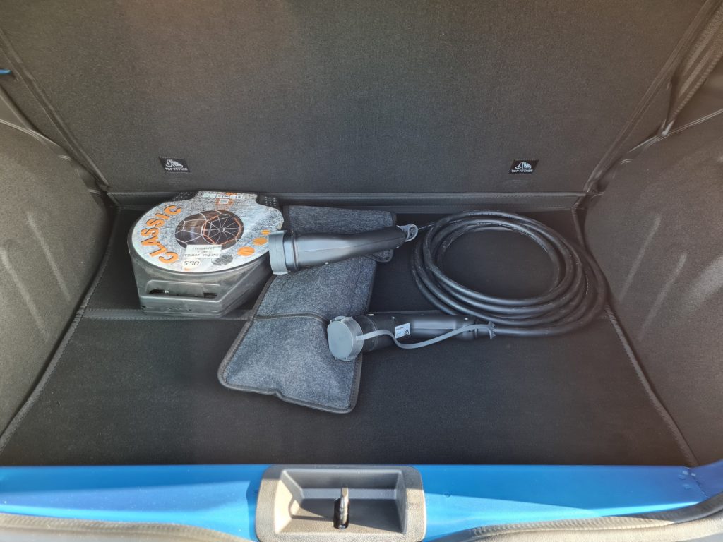 Polnilni vtič se nahaja čisto spredaj, pod zaščitno masko in ga moramo odpreti iz kabine. Največja moč polnjenja je 6,6 kW, žal enofazno, kar za večino verjetno pomeni polnjenje z največ 3,6 kW. Testni avto je imel tudi CCS-polnenje, a tudi ta ne blesti pri moči, je namreč omejen na dobrih 30kW. Ker nam radovednost ni dala miru, smo pogledali tudi pod pokrov motorja in žalostno strmeli v ogromen in neizkoriščen prazen prostor, ki ga je pustil bencinski motor. Še malo bolj smo bili osupli nad rezervno gumo normalne velikosti, ki zaseda prtljažni prostor, namreč z malo načrtovanja bi bila lahko slednja spredaj, poleg motorja, in bi avto s tem pridobil kar nekaj dodatnega prostora. Ali pa bi spredaj naredili podobno, kot ima Tesla, in bi bili tam denimo shranjeni polnilni kabli. Očitno je to že bilo preveč razmišljanja za inženirje oziroma dodatni strošek, ki ga računovodja projekta ni hotel podpisati.