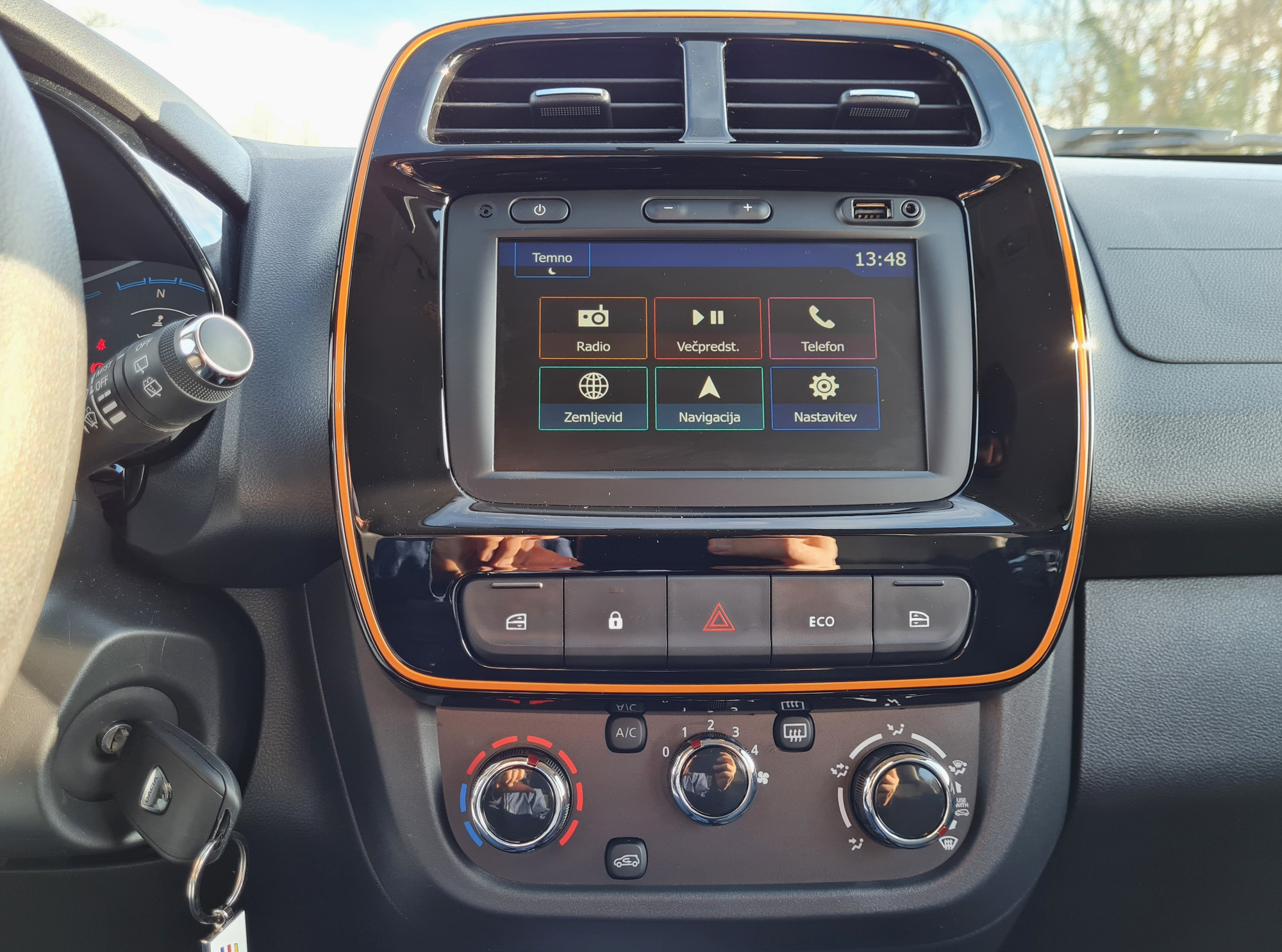 Doslej povedano je tisti lepši del. Če se vrnemo k sedežem, materiali na nivoju Dacie, voznik in sovoznik imata še nekaj prostora, medtem ko so zadnji sedeži bolj kot ne namenjeni otrokom, oziroma če zadaj sedita odrasla, je tudi dvojica spredaj bolj stisnjena. Voznikov delovni prostor je milo rečeno arhaičen, predvsem kazalniki kažejo na neko dobo, za katero smo mislil, da se je že končala. Osrednji klasični enobarvni LCD zaslon, podkrepljen z dvema navidez digitalnima merilnikoma v svetlo modro/zeleno rdečih led lučkah. Zgolj malčkom, ki imajo radi pisane luči, se bo to zdelo imenitno, a mi nismo štiriletniki, kljub temu, da se še vedno radi igramo. Občutek za silo popravi osrednji večpredstavnostni zaslon, ki je absolutno med manjšimi, a svoje delo dobro opravi. Poleg osnovnih možnosti, kamor spada radijski sprejemnik, je tu še navigacija, ki je besno piskala kljub temu, da smo izklopili zvočna opozorila, ter zanimiva, a pri tako majhnem avtu ne ravno nujna kamera za vzvratno vožnjo. Klasičen USB vtič je na zgornjem delu zaslona, polička za telefon pod zaslonom, zdaj pa ugibajte, kje bo šel kabel za povezavo in koliko bo motil pogled na zaslon. Ima pa Dacia Spring podporo za Android Auto oziroma Apple Carplay, kar je danes že praktično nuja.