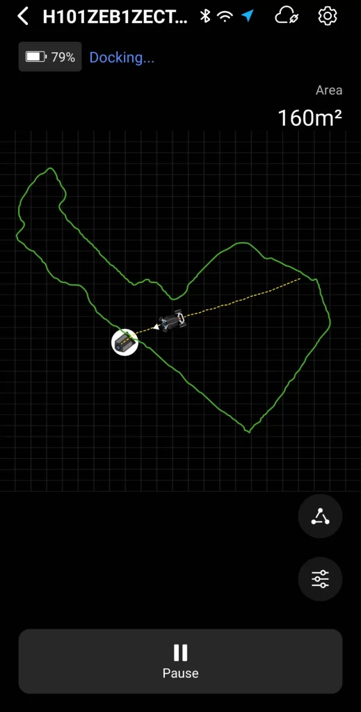 Baterija tega robota je naravnost odlična. Pri meni za kar veliko površino – sporočal je, da je pokosil blizu 150 kvadratnih metrov, kar je nekoliko pretirano, saj se njegovi pasovi vožnje deloma prekrivajo – nikoli ni potreboval več kot 20 odstotkov zaloge, pri Marjanu pa je bilo dovolj vsega pet odstotkov baterije. Zlahka bi torej opravil več košenj ali zelo velik vrt brez vmesnega polnjenja.