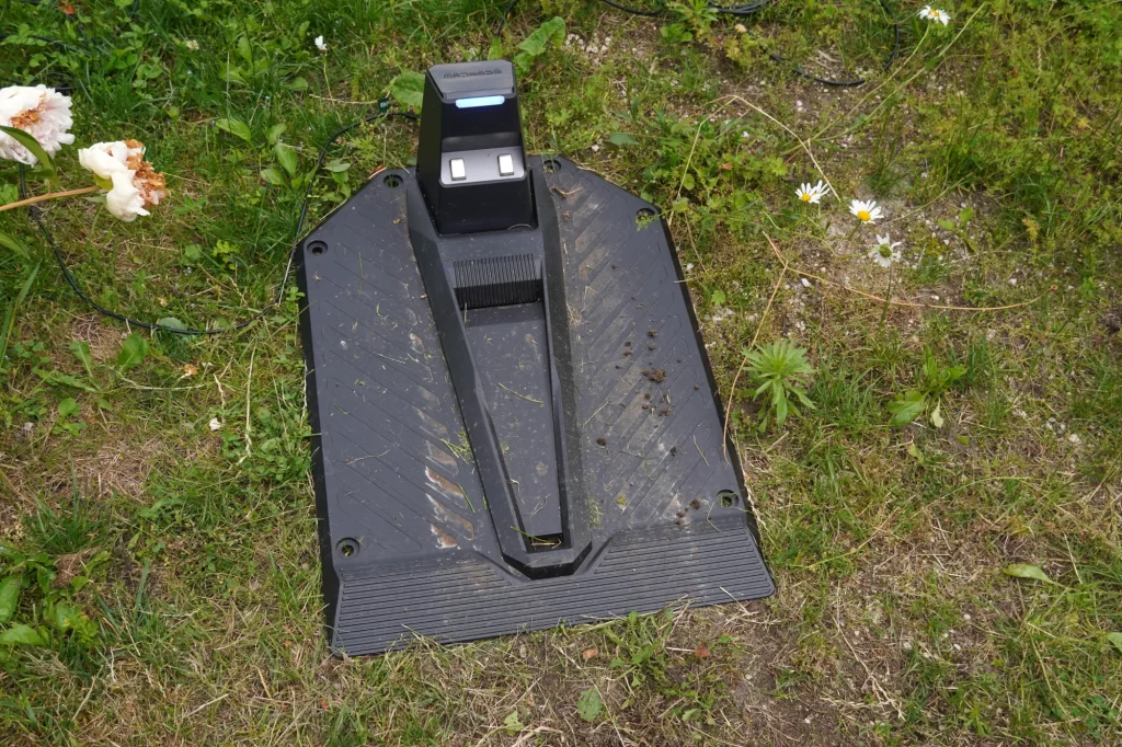 Kosilnico Ecoflow Blade oglašujejo kot »popolnoma brez kabla,« kar pa ne drži povsem. V vsakem primeru priključna postaja zahteva elektriko, nanjo pa je priključen še omenjeni drog za pozicioniranje. Postavitev obojega zato zahteva nekaj načrtovanje in morebiti tudi infrastrukturnih del. Drog, kot rečeno, mora biti na taki poziciji, da kakovostno sprejema signal, kar pomeni na odprtem, ne pod kakšnimi napušči ali čim takim, in da hkrati dobro pokriva celotno površino, ki naj bi jo robot kosil. Biti mora tudi blizu priključne postaje, ker povezovalni kabli niso zelo dolgi, za postajo pa ni najbolje, če je nekje na sredini, temveč je smiselno, če je ob robu, in seveda mora biti blizu kakšne vtičnice ali pa je treba po vrtu od nekje vleči kabel (»podaljšek«). Torej nekaj zahtev, ki se vsaj do določene mere izključujejo. Vse skupaj sem postavil bolj provizorično. V kolikor bi dejansko imel to kosilnico, bi me čakalo nekaj resnega razmišljanja in morda vkopavanja vsaj kablov do postaje, če že žice okrog in okrog vrta ne bi bilo treba. Ugotovil sem namreč, da se »satelitska palica« tam, kjer bi bilo najbolj smiselno imeti postajo za robota, ni obnesla. Bila je očitno preveč blizu nadstreška, zaradi česar ni dobila zadostnega signala. Tudi malce bolj spodaj ni bilo v redu, še bolj proti sredini pač, vendar sem do tja res moral potegniti podaljšek, da sem vse skupaj priklopil.