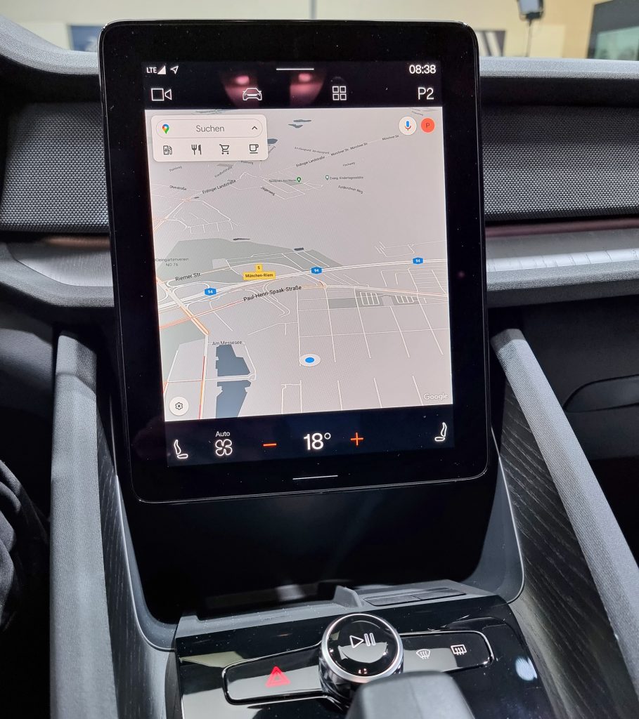 Omenjene posodobitve, ki jih proizvajalec pošilja v avtomobile brez obiska servisa, na enak način kot ga poznamo pri pametnih telefonih, so ena bistvenih lastnosti tega avtomobila, saj mu tako neprestano odpravljajo napake, dodajajo nove zmožnosti in optimizirajo delovanje. Digitalna in vedno povezana zasnova Polestar 2 pa se zrcali tudi skozi infozabavni sistem. Na osrednjem, pokončno postavljenem in simpatično integriranem zaslonu namreč teče Googlova platforma, v bistvu Android Auto s toliko prilagojenim vmesnikom, da se lepo sklada z velikostjo zaslona in še vsem tistim, kar avto ponuja samo po sebi – različne nastavitve in podatke o vožnji, porabi, polnjenju in ostalem – in česar ob delovanju tega sistema s telefona ne dobimo. Privzeti zemljevidi z navigacijo so seveda Googlovi, na voljo pa so še drugi in različne aplikacije za storitve pretočne glasbe, podkaste in še kaj. V sistem se seveda prijavimo s svojim Googlovim uporabniškim računom in lahko uporabljamo Googlovega glasovnega pomočnika. Sam uporabniški vmesnik ni najboljši, še posebej »domači« zaslon je dokaj prazen in neuporaben, običajno pa je na precej velikem zaslonu odprta zgolj ena aplikacija, zato je izkoriščenost površine neoptimalna. Za uporabnike iPhonov že nekaj časa napovedujejo podporo platformi Carplay. Spredaj sta na voljo dva priključka USB-C in odložišče za telefon z možnostjo brezžičnega polnjenja, še dva priključka USB-C za polnjenje telefonov pa sta zadaj. Voznik ima v vsakem primeru na voljo svoj zaslon s prikazom nekaterih ključnih informacij, lahko pa tudi zemljevida ali drugih vsebin z infozabavnega sistema. Prosojnega zaslona vsaj testni avto ni imel, kot tudi ne samodejnega regulatorja hitrosti, saj smo se peljali s povsem osnovno različico. Ki pa ji prav zares manjka zgolj radarski tempomat, čisto nič drugega nisem pogrešil.