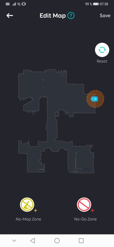Sesalnik je treba najprej povezati v domače brezžično omrežje, kar storite s pomočjo aplikacije EufyHome. Postopek je sicer preprost in lepo založen s potrebnimi informacijami. Če pa v prvem poskusu ne uspe, poskusite še enkrat. Nekako sem se že navadil, da je velikokrat tako, ko gre za izdelke kitajskih izdelovalcev. Dostikrat mi izdelka v prvo ni uspelo povezati, v drugo ali največ tretje pa vedno. Kasneje pa težav z delovanjem ni. V aplikaciji so običajne funkcije za nadzor in upravljanje z delovanjem sesalnika, pa prvem čiščenju prostora pa robot oblikuje tloris, ki ga lahko posnamete, da na njem narišete površine, na katere sesalnik ne sme ali črte, ki jih ne sme prevoziti. Funkcija, ki jo ima tudi S50, se je v praksi izkazala za zelo uporabno, saj odpade potreba in skrb za dodatne naprave (navidezni zid, svetilnik), ki jih v te namene potrebujejo nekateri drugi sesalniki. Je pa aplikacija Xiaomi Home (potrebuje jo S50) trenutno bolj izpopolnjenja, saj na tlorisu samodejno zazna sobe, če pa se pri tem zmoti, lahko napako popravimo. Zaradi tega je veliko bolj preprosto poslati sesalnik delat v določeno sobo, kot je to za enkrat možno v aplikaciji EufyHome. Ne eden ne drug pa nima možnosti, da bi lahko shranili več tlorisov (na primer nadstropji) in bi sesalnik sam zaznal, v katerem je.