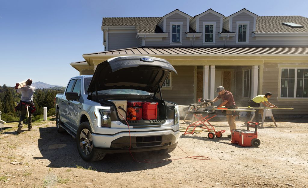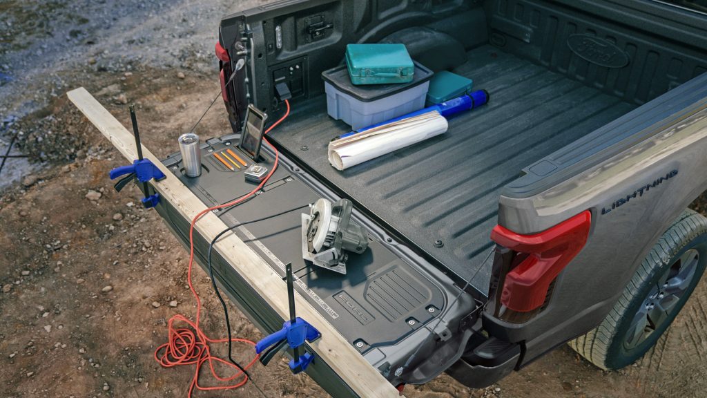 Druga odlična ideja je uporaba električnega vozila kot premičnega generatorja za druge naprave. Že za dvojček Hyundai Ioniq 5 – Kia EV6 sem zapisal, da ju bo mogoče uporabljati v te namene. Na primer za priklop hladilnika na pikniku. Toda F-150 Lightning gre še dlje. Mišljen je za terenske delavce, ki bodo lahko z njim napajali udarna kladiva, kompresorje, vrtalnike, žage in drugo resno opremo. V vozilu je skupno 11 vtičnic, med njimi seveda take z 230V. Poltovornjak pa bo lahko ob izpadu električne energije kar priložnostna »elektrarna« za hišo oz. stanovanje, če bo lastnik imel nameščeno domačo polnilno postajo. Oddajna moč bo lahko 9,6 kW in pri Fordu pravijo, da bo različica s podaljšanim dosegom, torej večjo baterijo, poskrbela za tri dni samooskrbe z elektriko, če računajo povprečno dnevno porabo 30 kWh. Ob zmernejši porabi naj bi se dalo preživeti tudi deset dni, kar bi na primer pokrilo izpad, kakršnega smo l. 2014 doživeli zaradi žleda.
