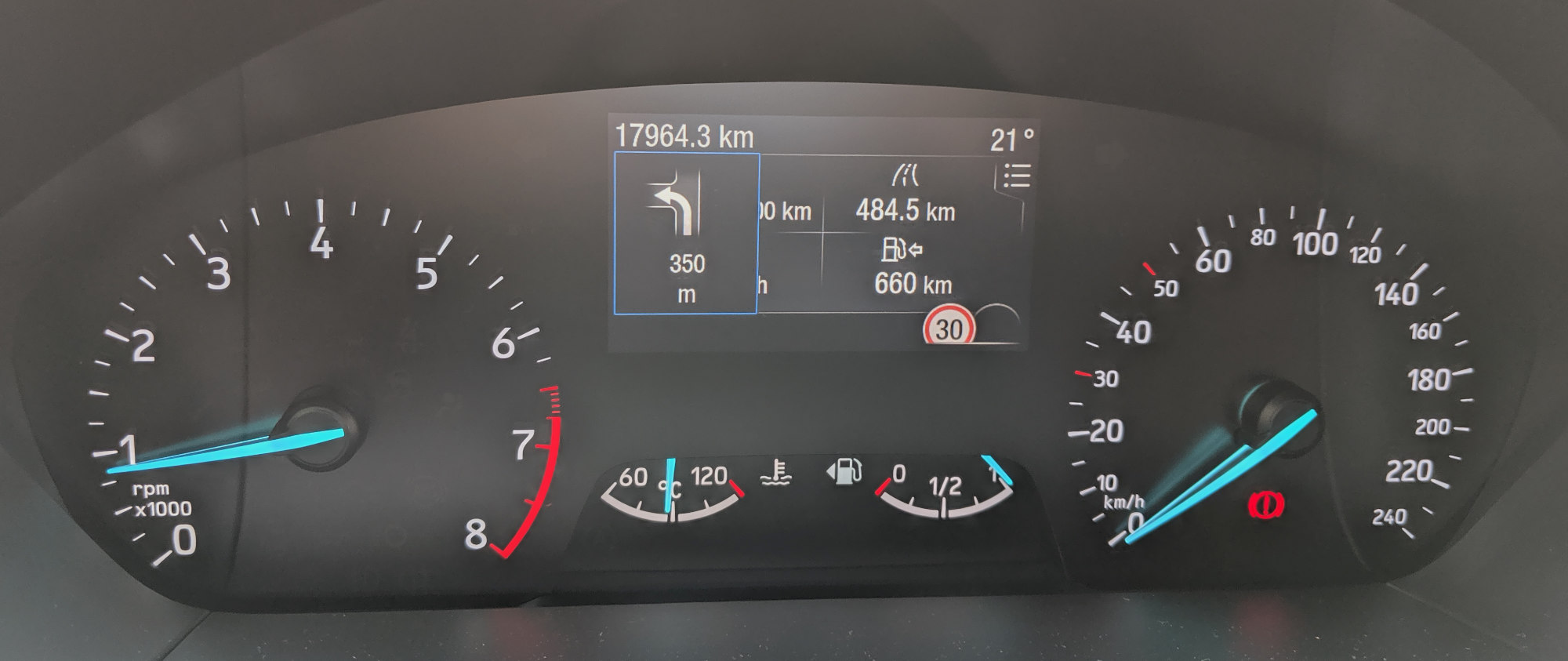 Od tehnologije je zagotovo vrhunec radarski tempomat, ki je eden najboljših, kar sem jih doslej preizkusil. Ima res lepe reakcije, še posebej zavira skoraj tako, kot bi to počel sam, razen kadar se pretirano »ustraši« kakšnega vozila spredaj, kar pa se zgodi zelo redko. Pospešuje tudi prijazno, mogoče mu kdaj treba malo pomagati, da gre še hitreje, ker avto ima dovolj zaloge v konjenici, toda v splošnem sem mu z veseljem prepustil odločanje. Opazil sem tudi, da podobno kot še kakšen drug zna pustiti prostor, če se nekdo obotavlja na prehitevalnem pasu, na voznem pa je v bistvu večja luknja do sprednjega avta, ki bi jo umetna inteligenca lahko zmanjšala, a kot kaže zna ugotoviti, da se tega ne počne. Sistem za ohranjanje avta znotraj pasu je prav tako kar zmeren in prijazen, na avtocesti dobrodošel, na podeželjskih pa se ga da priročno izključiti s tipko na obvolanski ročici, podobno kot pri Audiju A1, s tem, da pri Focusu potem tudi ostane izklopljen, ne vrne se ob vnovičnem zagonu avta. Prosojnega zaslona, ki je med dodatki, testni Focus ni imel, med merilniki pa je barvni »potovalni računalnik«. Ta prikazuje vse, kar je v resnici treba, ni pa atraktiven, ko bi bil celoten digitalni kokpit, kakršnega bo imela nova Puma.