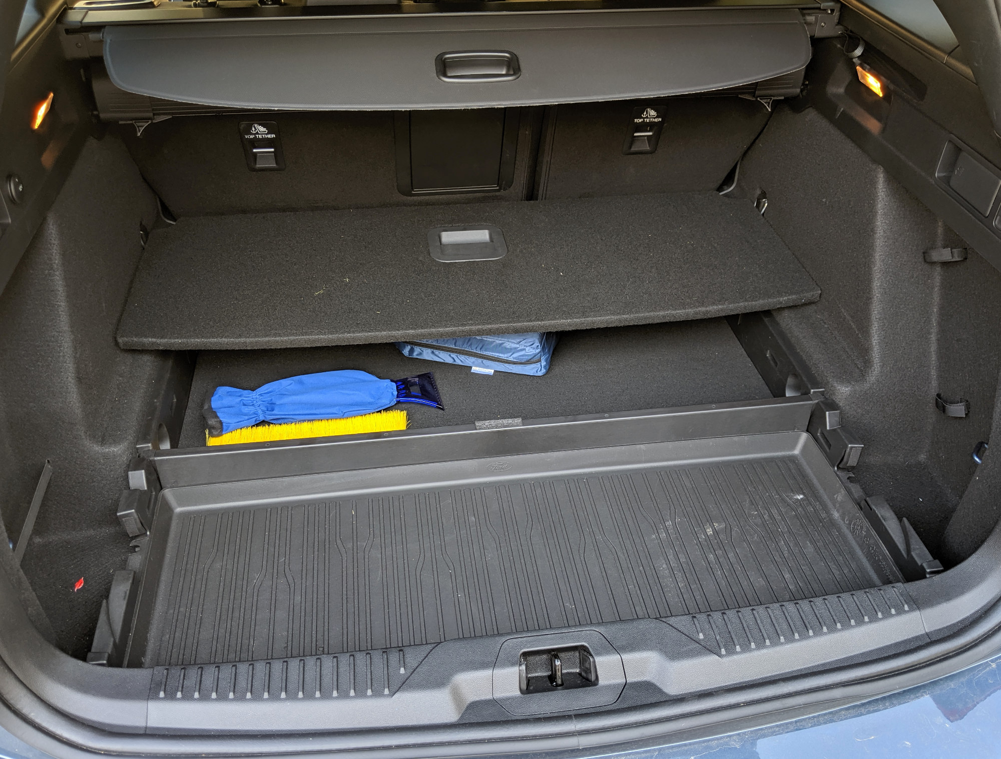 Dobra novica je sicer, da je prostora veliko več, da je bistveno napredovala digitalizacija in da je tudi njeno upravljanje konkretno poenostavljeno. Še posebej spredaj je novi Focus mnogo prostornejši od starega. Tako voznik kot sovoznik imata precej več prostora, še posebej za kolena, pa sploh ni treba sedeža potiskati nič bolj nazaj. Tako je tudi na zadnji klopi kar nekaj dodatnih cm v primerjavi s prejšnjo generacijo, in zato lahko odrasli sedijo udobneje, otroci pa ne brcajo v sprednje sedeže. Malce bolj dvoumen je napredek v prtljažniku. Številčno je bistveno večji, prirastek so izmerili na več kot 130 l, toda nisem prepričan o smiselnosti njegove ureditve. Glede na 11 cm daljši avto bi tudi tu pričakoval več dolžine, pa vendar je najdaljša dolžina v prtljažniku še vedno dober meter. Razlika je le v tem, da je na voljo po praktično celi širini, prej je bila samo na sredi, potem pa se je do robov skrčila za približno pet cm, ker zadek pač ni bil raven. Skupna višina je zdaj tudi večja (za približno tri cm), vendar žal nikoli ni na voljo v celoti, saj je prtljažni prostor permanentno pregrajen na dva nivoja. Spodnji, visok slabih deset cm, sicer dopušča shranjevanje kakšnih malenkosti, a vendar bi kdaj prav prišla višina (za kovčke in torbe), ki pa je je zdaj v bistvu še manj. Boljše kot prej so sicer kljukice za obešanje vrečk in ker se dvojno dno da delno dvigniti in s tem narediti visok in ograjen prostor, je to za prevažanje stvari iz trgovine fina rešitev. Na voljo (za doplačilo v okviru enega od paketov) je tudi luknja za smuči (ali kakšne letve, itd), ki pa je precej majhna in v najboljšem primeru lahko sprejme dva para, zato je smučanje brez kovčka na strehi možno samo za družine z manjšimi otroci, katerih smuči gredo v prtljažnik, štirje odrasli pa na to ne morejo računati. Pod črto tako novi Focus karavan ponuja več prostora in je bolj prilagodljiv, a bi bil še bolj, če bi se celotno prtljažno dno lahko spustilo na spodnji nivo in če bi bila odprtina v klopi večja (ali bi se celoten srednji del naslonjala podrl).