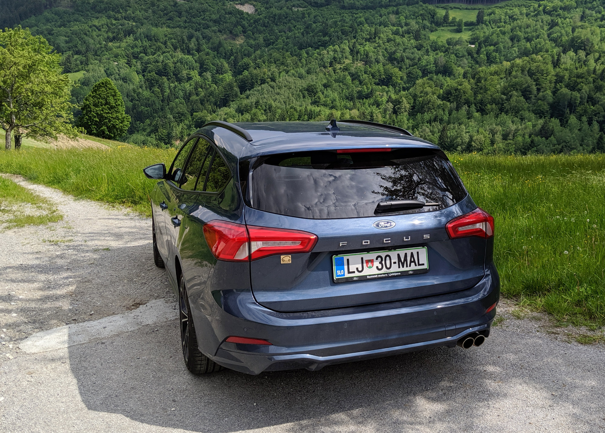 Vse skupaj zahteva nekaj začetne razlage. Focus ima glede na opremo in motor različne izvedbe zadnjega vzmetenja in sprednje podobe. Prvič pri tem modelu so se namreč zaradi nižanja stroškov, hrupa (tako trdijo) in tudi zaradi prihodnjih hibridnih izvedb zatekli k poltogi premi, pri kateri sta, poenostavljeno povedano, kolesi povezani z drogom. Je sicer sicer malo bolj sofisticirano, vsaj v konkretnem primeru. Kombilimuzine z močnejšimi motorji (bencinski 1.5 in dizelski 2.0) imajo še vedno večvodilno premo s dolgimi in kratkimi »rokami«, kar omogoča bolj natančen odziv volana in neodvisnost koles, če eno zapelje v luknjo oz. ga strese grbina. Zadnja informacija sicer pravi, da Ford tudi Focuse z bencinskim ecoboostom 1.5 prestavlja na »drog«. Karavani pa imajo (menda vsi, a za ta podatek nimam potrditve) nekoliko prilagojeno izvedbo večvodilne preme, pri kateri so blažilniki postavljeni skoraj vodoravno, kar sicer ne omogoča tako finih nastavitev, a daje več prostora v prtljažniku. Poleg tega je avto z opremo Active dvignjen za tri cm, saj je namenjen tudi vožnji zunaj asfaltiranih cest. Karavanski ST-Line z vrha bencinske ponudbe (1.5 ecoboost s 134 kW oz. 182 KM) ima tako »dinamično« podvozje, možnost izbiranja voznega načina, testni avto pa je stal še na nizkopresečnih 18-palčnih gumah (235/40) iz enega od doplačljivih paketov, serijske so sicer nekoliko višje 17-palčne (215/50). O izbiri gum še malo več kasneje, prej še o izgledu. Kajti ST-Line in tudi Active imata sprednje meglenke postavljene vodoravno, podobno, vendar z drugačnimi obrobami tudi Vignale, metem ko so (cenejše) izvedbe Trend in Titanium dobile pokončne meglenke in masko brez obrobe, kar jih v mojih očeh naredi nekako žalostne in neskladne (z masko). To uvodno predvajanje tako lahko zaključim z ugotovitvijo, da se praktično ne da posplošiti, kakšen je Focus na cesti, in da je njegova podobna preveč odvisna od izbire opreme. Pri Fordu so to, vključno z dejstvom, da so paleto razdrobili na reci in piši deset nivojem opreme, povsem po nepotrebnem zakomplicirali in verjetno tudi povišali stroške in s tem končne cene v salonih.