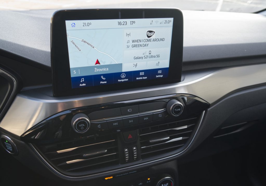Tehnologije je v tem avtu veliko, kot se za hibrida in za zahtevano ceno okrog 40 tisočakov tudi spodobi, po drugi strani pa v že dolgo znani Fordovi maniri spet ni pretiravanja. Kar me moti, je to, da avto konstantno gnjavi voznika s tem ali onim sporočilom, ki ga je treba potrditi kot zabeleženega s pritiskom na tipko OK (na volanu ali navidezno na osrednjem zaslonu). Začetno obvestilo infozabavnega sistema. Obvestilo o pripetih varnostnih pasovih. Opozorilo o tem in o onem. Vsakič znova, ko zaženete avto, in pogosto tudi med vožnjo. Res nadležno in presedajoče. »Nisem se usedel za volan, da bom na avtomobilovo zahtevo pritiskal OK,« je kot glavno zamero Kugi prav to izpostavil tudi Marjan. Infozabavni sistem Sync 3 je sicer v redu, prav tako voznikovi digitalni merilniki, smo pa na obeh področjih videli že boljše primerke. Na osrednjem zaslonu so marsikatere informacije in mogoče je imeti prikazane tri različne elemente naenkrat (denimo navigacijo, »radio« in telefon), seveda vsakega rahlo okrnjeno v primerjavi s celozaslonskim prikazom. Bi bil pa lahko zaslon večji in predvsem obrnjen proti vozniku, ne stran. Najbrž je v resnici naravnost, vendar sem, verjetno zaradi pozicije med vožnjo, ves čas imel občutek, da je zasukan za nekaj stopinj proti sovozniku ali sovoznici. Seveda delujeta tako Android Auto kot Carplay in za navigacijo sem raje izbral eno od teh možnosti, kajti vgrajena se ni posebej izkazala pri interesnih točkah, predvsem pa me moti dvojni prikaz zemljevida, ko je treba kam zaviti, ker me zgolj bega. Digitalni merilniki ne dajejo veliko prilagodljivosti, zato pa verjetno več informacij kot marsikateri podobni v drugih avtih. Lepa poteza je vgradnja tako priključka USB-C kot starejšega USB-A za združljivost s kakršnim koli kablom. In še odlagalna površina z brezžičnim polnilnikom je dovolj velika za kateri koli telefon. Prav tako je pohvalno, da je celotno upravljanje ogrevanja in hlajenja, vključno z ogrevanjem volana in sedežev, po starem – s tipkami in okroglima gumboma. Zadaj imajo potniki prav tako lahko ogrevanje pod zadnjicami, na zadnji strani sredinskega naslona za roke so prezračevalne reže, namesto priključkov USB pa je začuda 230V vtičnica.
