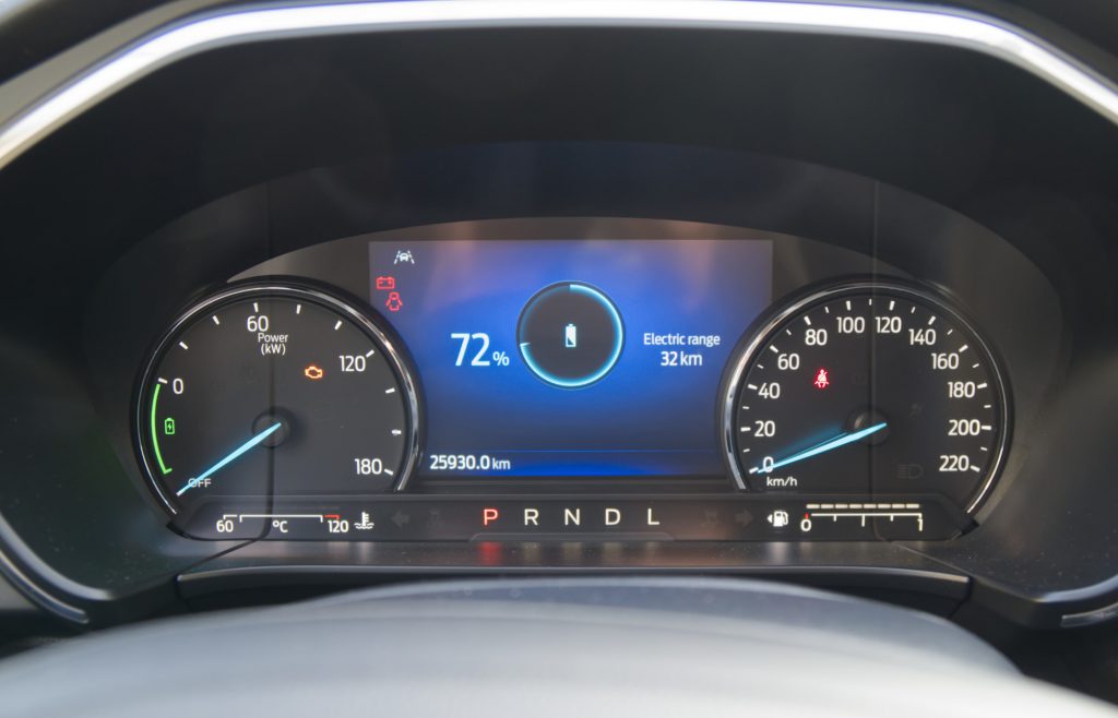 Kaj torej prinaša oznaka PHEV? Bencinski motor z malce nenavadnim Atkinsonovim ciklom delovanja, brezstopnejski menjalnik (CVT), elektromotor in baterijo s kapaciteto 14,4 kWh, kar je verjetno bruto številka. Skupna, t. i. sistemska moč znaša 165 kW oz. 225 KM, seveda pa lahko avto vozi tudi samo na elektriko ali samo na bencin, kjer je potem moči manj, a v obeh primerih še vedno dovolj za avtocestne hitrosti, seveda sploh pri bencinu. Kdaj vozi na kateri pogon, pa je blizu vprašanja za milijon evrov. Verjetno niti Fordovi inženirji ne bi znalo povsem natančno napovedati, imam pa nekaj ugotovitev in domnev, če bi seveda želel to dirigirati po svoje. V videu bolj podrobno razlagam, kako in kaj se da nastavljati in upravljati, na kratko pa so možnosti nekako tri. Lahko prepustiš avtu, da funkcionira, kot se mu zdi najbolj primerno. Lahko mu poskušaš zapovedati, naj vozi izključno na elektriko, vendar ni nujno, da bo vedno ubogal. Lahko pa se odločiš, da elektriko varčuješ za pozneje, a tudi takrat lahko Kuga še vedno za krajša obdobja preklaplja na povsem baterijski pogon. Vse to izbiraš s tipko EV na osrednji konzoli, malo pod gumbom za »menjalnik«. Toda nad to je še tipka za vozne načine, ki ima tudi svoj vpliv, saj način Eco daje več možnosti za vožnjo na elektriko kot standardni (Normal) in seveda športni (Sport) način.