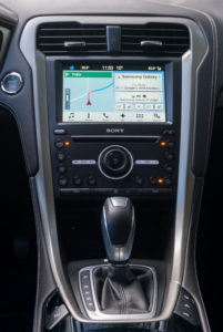 Ford o svojem večpredstavnostnem sistemu Sync že nekaj let zelo pogosto govori ob vsaki priložnosti. Občutek imam, da ga tudi nesprestano spreminja. Nekatere različice so boljše, druge malo slabše. Zadnja, v tokratnem mondeu je na srečo med boljšimi. Za razliko od prejšnje je tokrat zaslon veliko odzivnejši in manj dojemljiv za prstne odtise, ki ob močnem soncu otežujejo pogled na samo vsebino. Tudi uporabniški vmesnik je poenostavljen in bolj priročen, še posebej me veseli, da so navidezni gumbi za preklapljanje med različnimi funkcijami (audio, klimatska naprava, navigacija, …) precej večji in da so gumb domov premaknili s slabo vidne pozicije na sredini zgoraj v levi zgornji kot in ga tudi povečali. Je pa z večjo preglednostjo prišlo tudi krnenje funkcionalnosti. Še posebej glasbeni predvajalnik in navigacija sta nekoč ponujala več možnosti, zdaj imata zgolj tiste osnovne, najbolj nujne. Ima pa radio tudi sprejemnik DAB+, se pravi je v koraku s časom. Zaslon se v osnovnem pogledu precej lepo razdeli na navigacijo, glasbeni predvajalnik, telefon ter ogrevanje sedežev in volana. Spodaj pa so lahko gumbi izbirnikov. Pritisk na vsako od naštetih možnosti odpelje uporabnika v konkretni meni ali spremeni nastavitev gretja. Kar priročno, je pa vsaj za klimatizacijo in ogrevanje sedežev isto mogoče doseči tudi s tipkami pod zaslonom (edino za ogrevanje volana se je treba stegniti na zaslon). Lepo je, da Ford kljub kritikam o njihovem pretiranem številu še ohranja fizične tipke.