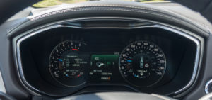 Pred voznikom je tu polovična rešitev med klasičnimi merilniki in zaslonom, ki bi zapolnil celotno površino, tako kot pri Volkswagnu ali Peugeotu. Čeprav je zadeva nekoliko manj atraktivna, pa ni nič manj informativna. Možno je izbirati, kaj je prikazano na levi in v sredini – denimo potovalni računalnik in navigacija, na desni pa so informacije o asistencah in dosegu. Izbiranje med temi prikazi ni najbolj intuitivno, saj ima voznik na obeh straneh volana, torej na dosegu desnega in levega palca sklopa povsem enakih tipk in zlahka pomeša njihovo namembnost. Tudi obvolanske tipke za upravljanje s tempomatom in radiem je Ford pred leti že imel bolj domišljene in priročne – dvosmerne lopatice, ne zgolj tipke na volanu.