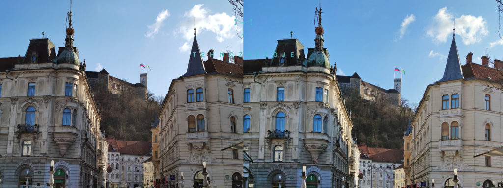 Zame rahlo podcenjen pri tem fotoaparatu je ultraširokokotni objektiv. Pri tem je slika dejansko zelo podobna kot jo dobimo z glavnega, pa tudi stranskega popačenja je manj kot pri marsikaterem drugem telefonu. Seveda je vse, kar je ob straneh, krivo, a ne pretirano, predvsem pa ni sodčkasto. Ob robovih je tudi ostrina slabša in HDR pri tem tipalu ne deluje enako dobro kot pri glavnem, toda rezultati so vseeno več kot spodobni. Še posebej pa je ta objektiv primeren za snemanje videa (4K), saj takrat na sceno stopi kar konkreten izrez, kar pomeni, da je goriščnica bližje 20 mm namesto 13 mm. Tako odpade tisti del, kjer je največje popačenje, še vedno pa je dovolj široko, da je mogoče zajeti marsikaj, za kar bi bilo pri glavnem objektivu (še posebej ob upoštevanju izreza pri njem) stopiti kar nekaj metrov nazaj.
