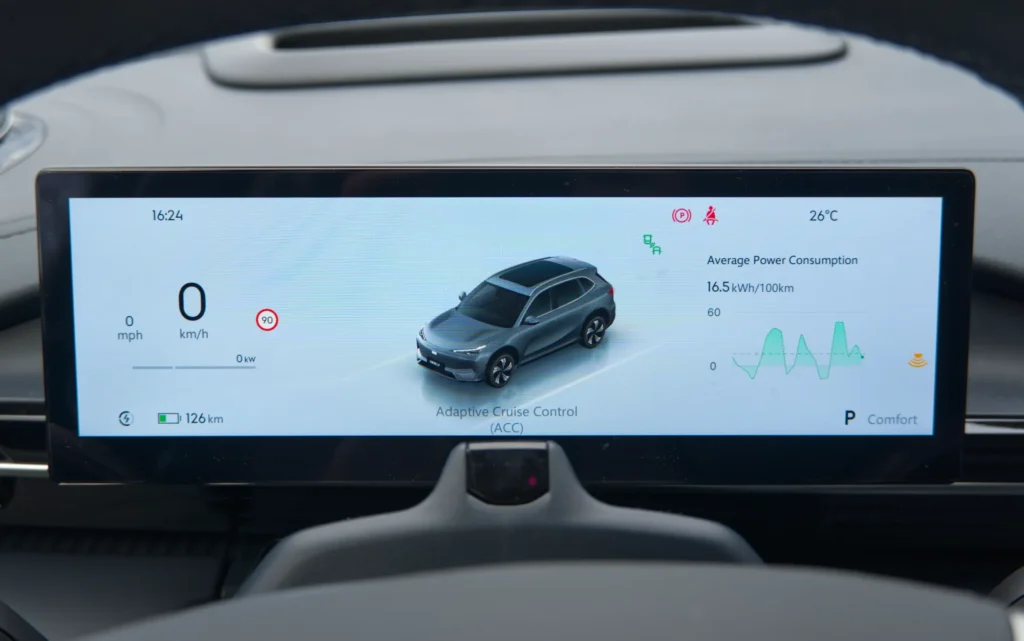 Boljši vtis pustita voznikov zaslon, ki je vsaj približno informativen, četudi podatke preveč drobi, namesto da bi bili združeni na enem mestu, ter ne prikaže odstotka baterije, in prosojni zaslon z najbolj pomembnimi vozniškimi podatki (vendar brez obogatene resničnosti, ki jo ponuja določena konkurenca). Ne morem mimo piskanja, ki ga je absolutno preveč. Za prekoračitev hitrosti, »nezbranost« voznika, prekoračitev črte in še kaj. Večino tega je mogoče izključiti in potem je vožnja skoraj zenovska, vendar je za to potrebnih preveč korakov brkljanja po osrednjem zaslonu, in ob naslednjem zagonu avta se vse znova vklopi in nervira.