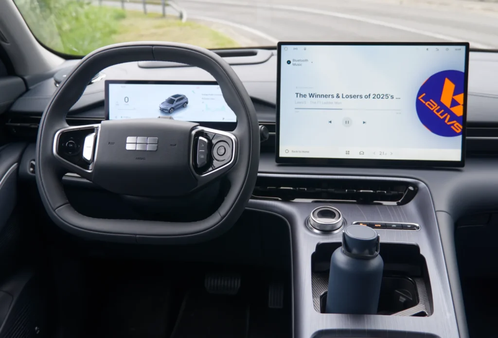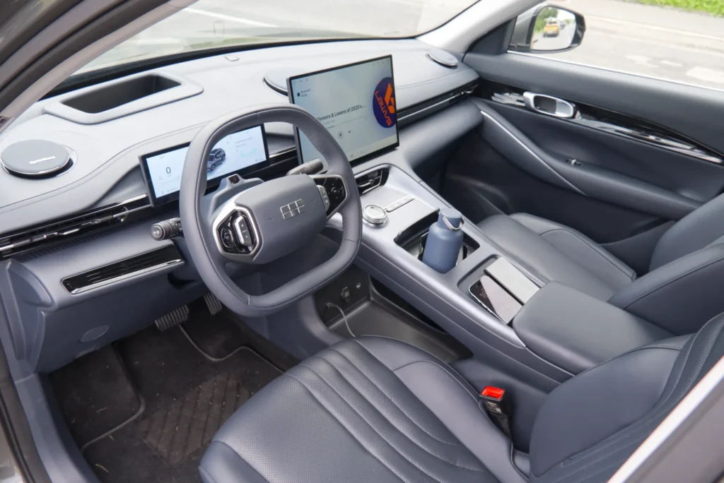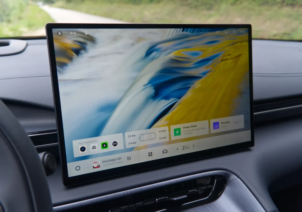 Če bi avto vizualno in po zaznavni kakovosti ocenjeval zgolj od znotraj, bi bil zelo zadovoljen ali ceno navdušen. Zunaj me preprosto ne pritegne in se mi zdi izrisan nekako v slogu, »Saj tole bo čisto v redu.« Počutje je dobro, sedeži udobni in lahko masirajo, četudi bi sam izbral kakšen drug material za prevleke, oblikovanje dovolj lično, bi pa nekoliko zmanjšal zajetno sredinsko konzolo, spremenil obliko volana in dodal kakšen fizični gumb za upravljanje. Skoraj vse je treba opraviti na osrednjem zaslonu, ki ni najbolj intuitiven – spodnja, vedno prikazana vrstica se spreminja in ima premalo hitro dostopnih nastavitev za klimatizacijo – in predvsem izredno slabo izkoriščen. Ali prikazuje majhne ploščice z večinoma nepomembnimi informacijami in bližnjice do določenih »aplikacij« (te se prav tako samodejno spreminjajo), nad njimi pa veliko praznega »ozadja«, ali pa določeno zadevo celozaslonsko. O čem takem, kot bi bila denimo razporeditev z navigacijo (slednja sploh ni delovala) čez pol zaslona, ter še dvema ali tremi zadevami (radio/večpredstavnost, telefon in informacije o »elektriki«) na preostali polovici, lahko samo sanjamo. Kot žal lahko tudi o Android Autu, zaradi česar je obupen infozabavni sistem – od dobre ločljivosti zaslona in domnevno zmogljivega procesorja voznik nima kaj dosti – še toliko večja nadloga. Za povezavo Androidnega telefona je treba uporabiti aplikacijo, o kateri je odveč sploh izgubljati besede, ker je neuporabna. Omogoča uporabo peščice aplikacij, ki jih imate nameščene na telefonu (pri meni jih od več kot 200 prepoznala mogoče pet), zrcaljenje pa deluje na dve tretjini zaslona in ne omogoča upravljanja prek njega, temveč zgolj na telefonu. Ni mi uspelo usposobiti niti upravljanja avta na daljavo prek aplikacije, morda je zdaj že kaj drugače, a dvomim.