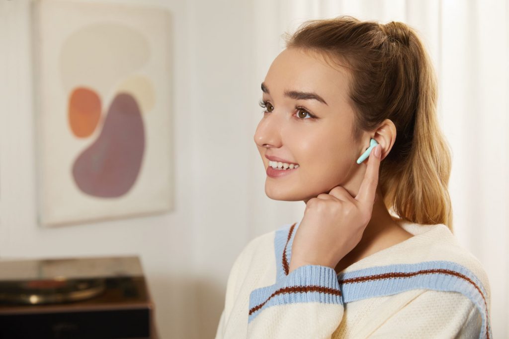 Sodobno obliko slušalk in polnilne škatlice v beli ali zeleni barvi je navdihnila lahkotnost oblakov in neba. Zaradi natančne oblike in zasnove se prilegajo zunanjemu delu ušesa in zmanjšujejo pritisk na ušesni kanal, s čimer je doseženo izredno udobje uporabe. Za boljše prilagajanje so na voljo trije različno veliki silikonski čepki. Z ergonomsko zaobljeno krivuljo in naravno obliko sta slušalki udobni in stabilni, zato ju lahko brez težav nosite tudi več ur.