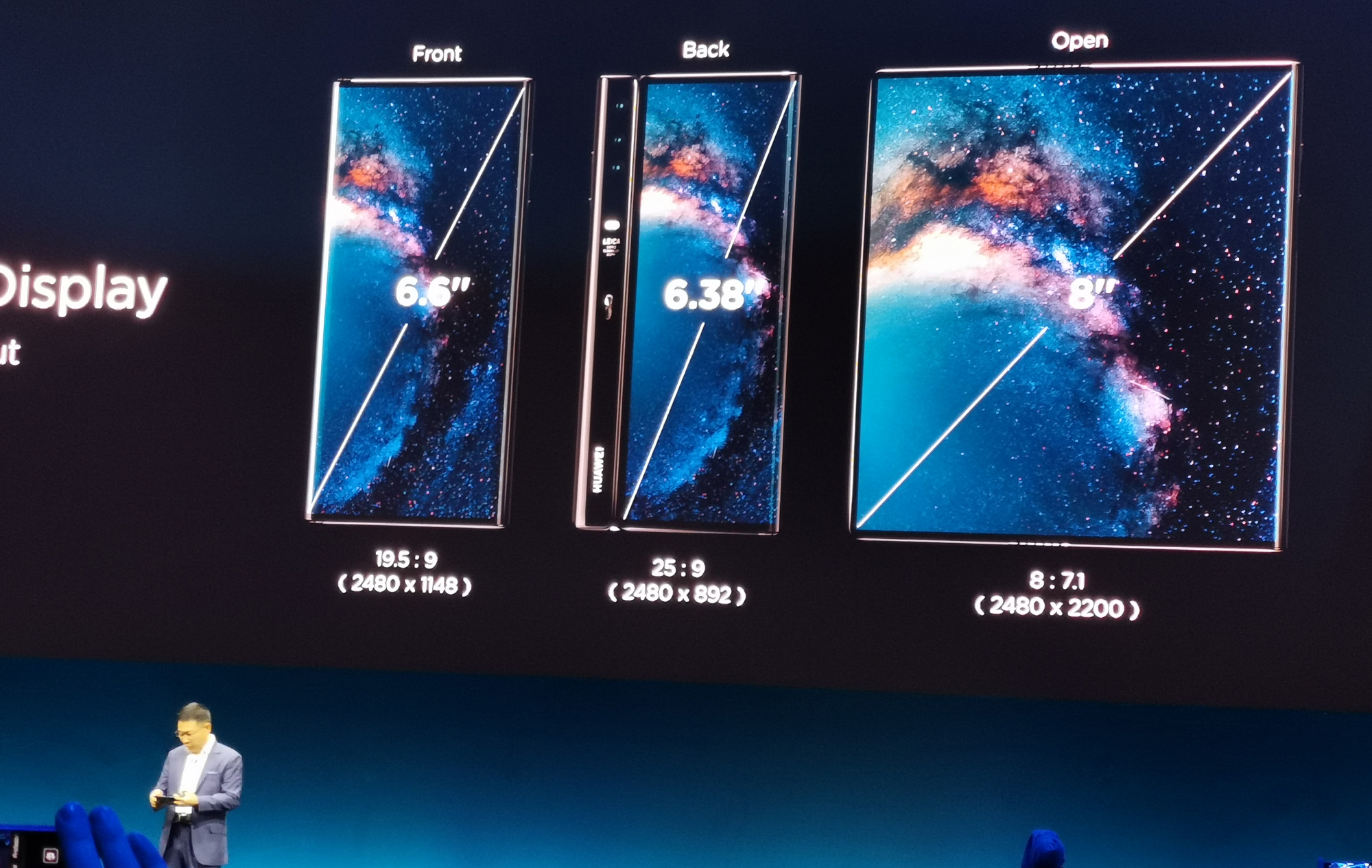 Samsung je prehitel ostale za nekaj dni, vendar pa vsaj na prvi pogled Huaweijeva reč s prepogljivim zaslonom izgleda bolje premišljena. Čeravno za nas še vedno za steklom. Drugačna je že v osnovi, saj je ta zaslon na zunanji strani naprave, ne na notranji. Tako ga je mogoče uporabljati v treh različnih načinih. Lahko je raztegnjen na tablico z osmimi palci zaslonske diagonale in tudi kar visoko ločljivostjo. Prepognjen pa na eni strani ponuja 6,6-palčni zaslon z dokaj običajnih razmerjem stranic, na drugi pa precej ožji 6,38-palčni zaslon. Nobenega od njih ne moti kakšna zareza in tudi fotografski sklop je samo eden. To pa zato, ker je ob strani, pokončno, tako da je uporaben v obeh primerih – ko je »telefon« odprt ali zaprt. In zaradi tega so menda selfiji precej boljši kot pri večini običajnih telefonov.