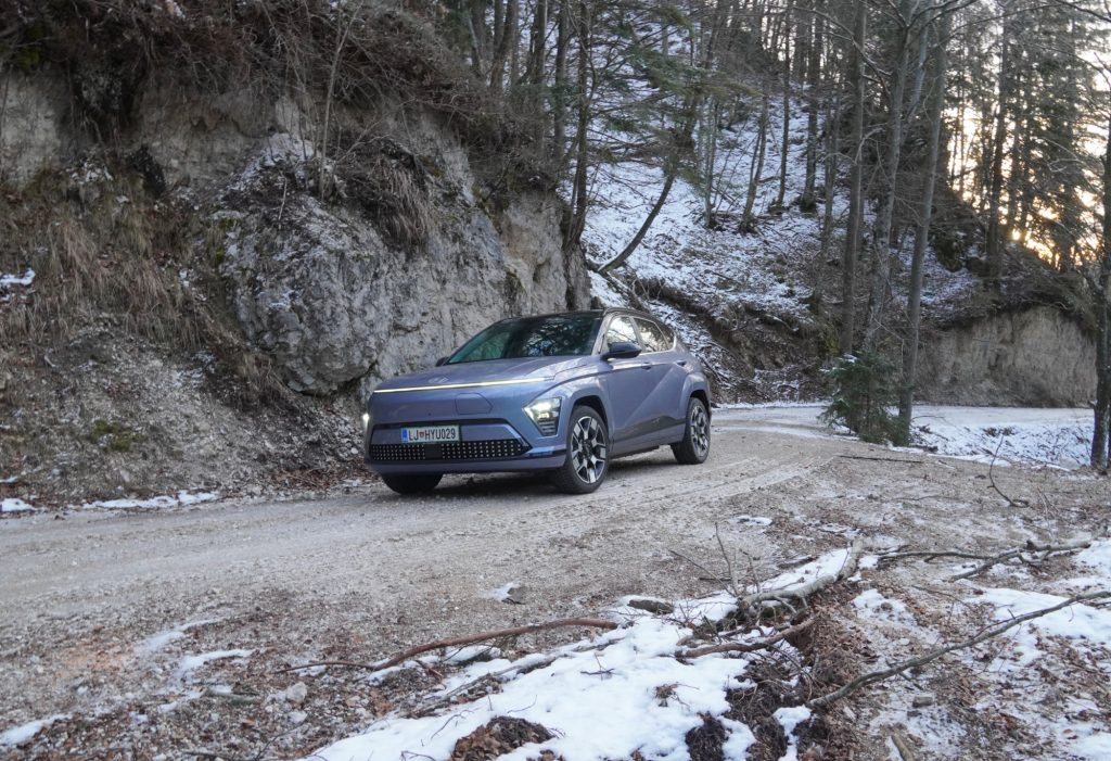Ta avto je težko »popredalčkati.« Že oblikovno zelo izstopa, zagotovo bo koga njegov videz odvrnil, komu pa se bo zdel posrečeno drugačen. Osebno me ne navdušuje pretirano, a me tudi ne odbija toliko, da bi zaradi tega Kono izločil iz izbora. Zdi se mi celo bolj skladna in z manj nepotrebnimi prijemi kot prejšnja. Mogoče ena od odločitev, ki bi jo spremenil, je priključek za polnjenje povsem spredaj in še malo zamaknjen vstran, ne na sredini (kot ga je imel denimo Renault Zoe). Bolj smiselna lokacija se mi zdi ob strani, naj bo spredaj ali zadaj, že zaradi tega, kako so postavljene polnilnice, pa tudi zaradi morebitnih poškodb v nesreči. Tudi velikostno, glede dosega in hitrosti polnjenja z enosmernim tokom je nekje vmes, rahlo na nikogaršnji zemlji. V obeh pogledih presega avtomobile, tudi SUV-je nižjega razreda, kot sta denimo Alfa Romeo Junior in Peugeot e-2008 ali prihajajoči Renault 4 (»Katrca«), toda tisti pravi »družinski« so še nekoliko večji in/ali nudijo opcijo večje baterije s slabih 100 km dodatnega dosega.