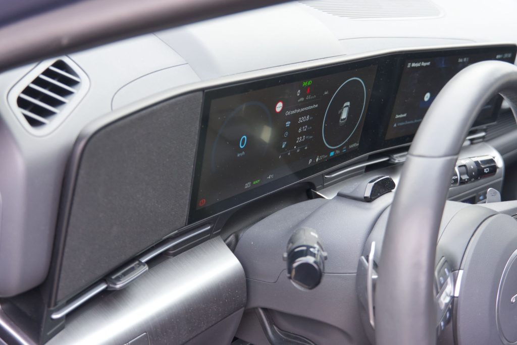 Armaturna plošča vsebuje ogromno tipk, malokje jih še lahko srečamo toliko, kar bo nekaterim nedvomno zelo všeč, drugim pa morda malce manj. Skoraj vse se da nastaviti brez dotikanja osrednjega zaslona, pa se vendar zna tudi v tem primeru oglasiti piskanje, da voznik gleda stran od dogajanja v prometu. Nič nimam sicer proti tovrstnemu načinu upravljanja, mali zaslonček za temperaturne nastavitve namesto dodatnega, še tretjega zgoraj (kot pri Kii EV3), skupaj s tipkami, se mi zdi bolj priročna rešitev.
