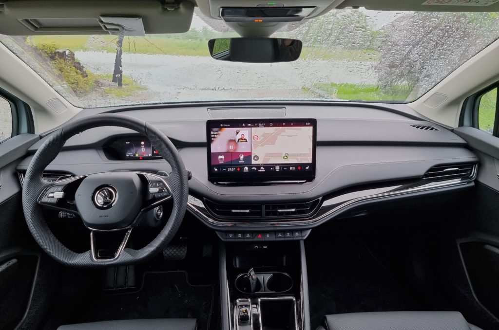 Od tehnoloških bombončkov so poleg projicirnega zaslona prisotni še mnogi drugi iz nabora skupine WAG. Vsi avti imajo seveda serijsko žaromete LED, a mogoče jih je nadgraditi v matrične. Asistenčni sistemi pomagajo med vožnjo, pri parkiranju in pri izvozu iz parkirnega prostora. Priučeno parkiranje si tudi »zapomni« najbolj pogosta mesta in način parkiranja ter lahko nato zadevo opravlja namesto voznika. Polnjenje je mogoče spremljati v aplikaciji Škoda Connect, kjer je mogoče nastavljati tudi časovnik odhoda in nekatere druge parametre, da je avto vedno optimalno pripravljen pred odhodom.