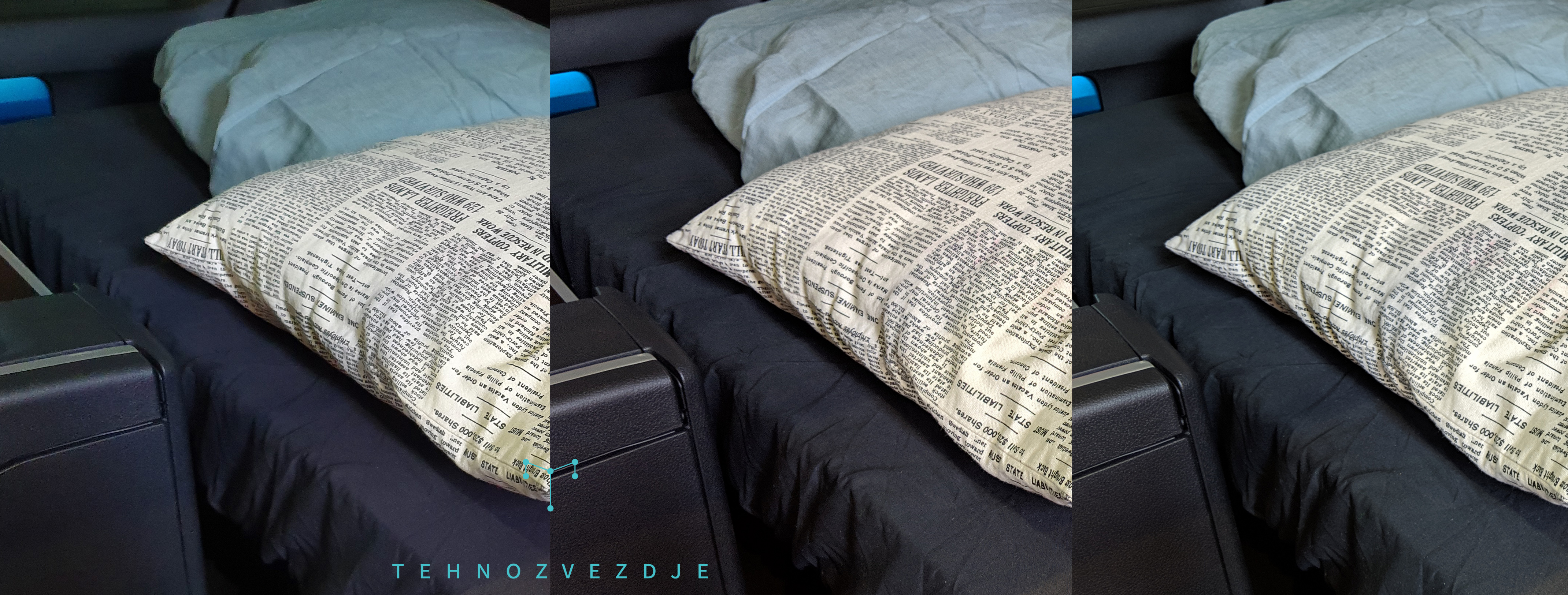 Prav tako pri tem primeru. Že osnovna Pixlova fotografija daje veliko več, če pozornost usmeriš v vzorec na škatli na levi ali na blazino zadaj. Pixlova fotografija v nočnem načinu pa še popravi barve in osvetljenost posnetka.
