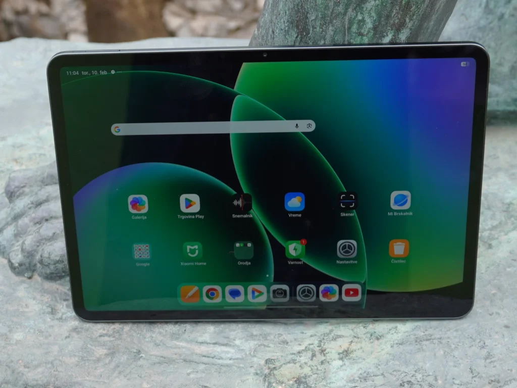 Zaslon je dovolj velik in ponuja solidne lastnosti, vendar bi OLED naredil precejšnjo razliko. Prednosti so žive barve, dobra svetilnost in hitro osveževanje. Po drugi strani trpi za tipičnimi slabostmi tehnologije IPS, slabšim kontrastom in manj globoko črno barvo. Xiaomi sicer ponuja različico z matirano površino, ki zmanjšuje odseve in je zato uporabnejša na prostem, vendar je ni mogoče dobiti. Tehnični podatki jasno namigujejo, da je tablica zaradi zaslona in procesorja posebej primerna za igranje iger. Pod pogojem, da uporabite zunanji krmilnik, saj držanje naprave v rokah ob hkratnem pritiskanju zaslonskih ikon za upravljanje ni najbolj udobno.