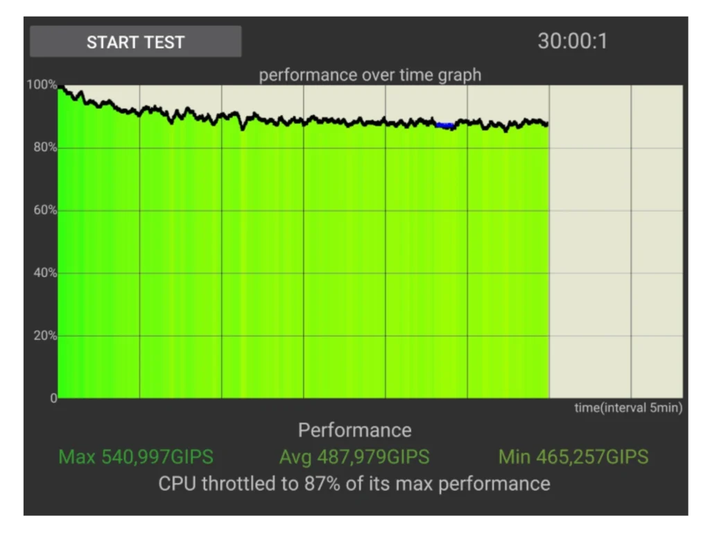Glede kakovosti izdelave nimam pomislekov. Enovito kovinsko ohišje je trdno in zelo tanko. Procesor se pri zahtevnejših nalogah pričakovano bolj segreje, vendar se toplota zaradi velike hrbtne površine razmeroma učinkovito odvaja v okolico. Nekaj zniževanja takta jeder je opaziti, a padec ni dramatičen. Po pol ure obremenitvenega testa zmogljivost pade na le približno 87 odstotkov začetne vrednosti.