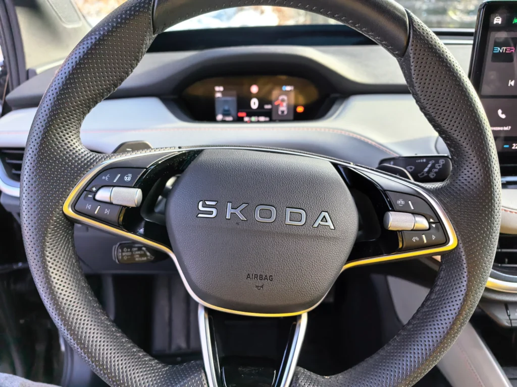 Čeprav si skoraj vse deli z Volkswagnovimi avtomobili ID, Škoda na srečo ni posvojila na dotik občutljivih površin na volanu. Tam so namestili prave tipke, hkrati pa ročico »menjalnika« z obvolanske ročice preselili na sredinsko konzolo. Stvar okusa, a meni je tako bolj všeč. V infozabavni sistem se niso kaj dosti vtikali. Ostal je precej enak, le ne razumem »poante«, da v osnovni navigaciji ni bilo načrtovalnika polnjenja na poti oziroma da je bila v sistemu še ena aplikacija iste namembnosti. Ali je to povezano z dodatno naročnino ali zahtevo po uporabniškem računu, nisem preverjal. Moje mnenje je, da gre za osnovno funkcijo električnega avtomobila, ki bi morala biti vedno dostopna, brez pogojevanja in predvsem preprosta za uporabo.