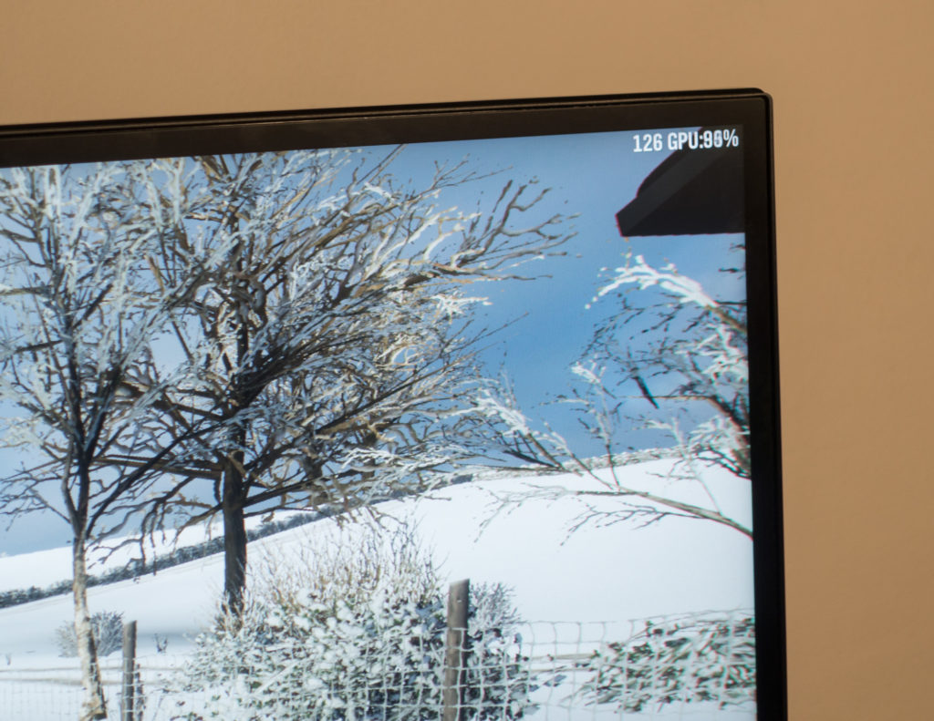Z izjemo dokaj zadržane zunanjosti je to čisto konkreten igričarski monitor. Poleg 144 Hz podpira kratke odzivne čase, tehnologijo AMD Radeon Free Sync 2 in precej nastavitev, pomembnih za resno igranje. Za bolj običajno rabo pa so pomembni kakšni drugi podatki, denimo matrika IPS za dobre vidne kote, precejšen barvni razpon, širok nabor priključkov in različne možnosti prilaganja. V teoriji torej vse lepo in prav, tisoč evrov je tudi še nekje na meje sprejemljive cene. Vseeno pa ni čisto vse tako lepo, pa niti ne toliko zaradi samega monitorja, kot zaradi tega, kaj igranje na njem potegne za sabo.