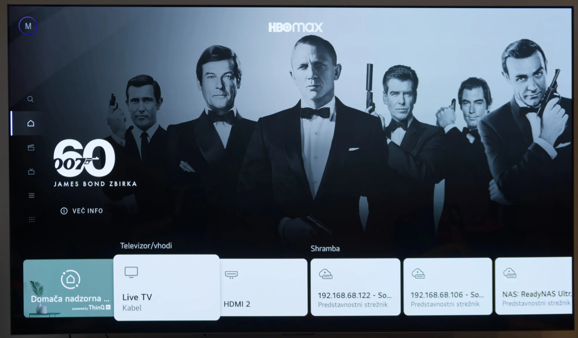 »Čudežni« daljinski upravljalnik ni doživel večjih sprememb, kar je rahla škoda, kajti konkurenca ponuja ali take z več tipkami ali bolj prečiščene, tudi z osvetljenimi tipkami in bolj prestižnimi materiali ter celo polnjenjem z dnevno svetlobo in radijskimi valovi. LG-jev je sicer ergonomsko v redu, sicer pa v ničemer ne izstopa. Vsaj tipko za hiter dostop do zaslonske pasice za izbiranje virov (vhodov) so mu dodali. Še vedno pa vztrajajo na tem, da je daljinec tudi nekakšna zračna miška, ki krmili kazalko na zaslonu, in da se tega ne da izključiti. Veliko raje imam pomikanje med zaslonskimi elementi s smernimi tipkami in mi ta kazalka, ki beži sem ter tja po zaslonu že odkar testiram LG-jeve televizorje preseda. Glasovni ukazi so sicer na voljo, vendar ne, če so izbirniki nastavljeni na slovenščino. Sam vmesnik sistema WebOS je sicer nekoliko odzivnejši in hitrejši kot prej, kar je verjetno posledica novega, zmogljivejšega procesorja. Dostop do aplikacij je hiter (po pritisku tipke domov na daljinskem upravljalniku), moti pa me, da se ali ne da ali ne znam urediti zgornjega dela domačega zaslona, kamor sistem razporedi svoje gradnike (vremensko napoved, različne predloge, tudi zadnji televizijski program, kar je vsaj koristno), med njimi priporočila iz storitve Amazon Prime Video, kamor sploh nisem bil vpisan in česar se nikakor nisem mogel znebiti. Ponudba aplikacij na tem sistemu je sicer dobra, večina najbolj uporabljanih je na voljo. Za predvajanje z mobilnikov in tablic sta na voljo protokola Airplay, ki ga uporabljajo Applove naprave, in Miracast na androidni strani, kjer ga vsak proizvajalec poimenuje drugače. Žal ni Googlovega Chromecasta, a ga najbrž ne bo prav veliko uporabnikov pogrešalo.