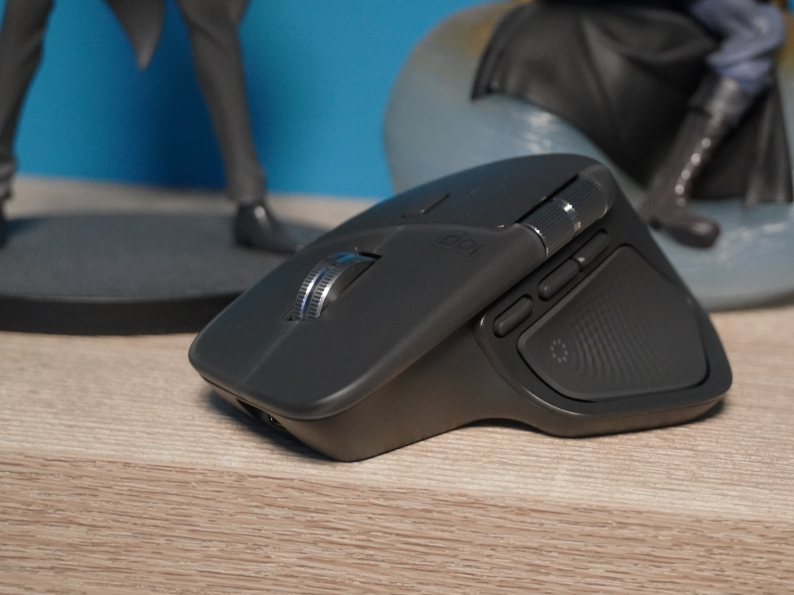 Miš, ki mimogrede s ceno okoli 130 evrov še zdaleč ne sodi med cenejše naprave, je precej velika in oblikovno prilagojena desničarjem. Poleg obeh standardnih tipk s koleščkom med njima ima še stranski kolešček, pod njim gumiran naslon za palec, ki je hkrati tipka, tri tipke nad njim in še eno za koleščkom, s katero prilagajamo njegovo delovanje. Spodaj sta stikalo za vklop in gumb za preklapljanje med povezanimi napravami. Da vse skupaj deluje, kot mora oziroma kot želite, je kajpada nujna namestitev Logitechovega programa Logi Options+. Spredaj so vrata USB-C za polnjenje baterije. Vsake toliko je treba miš priklopiti na napajalnik. Iz meni nerazumljivega razloga žična povezava z napravo ni mogoča.