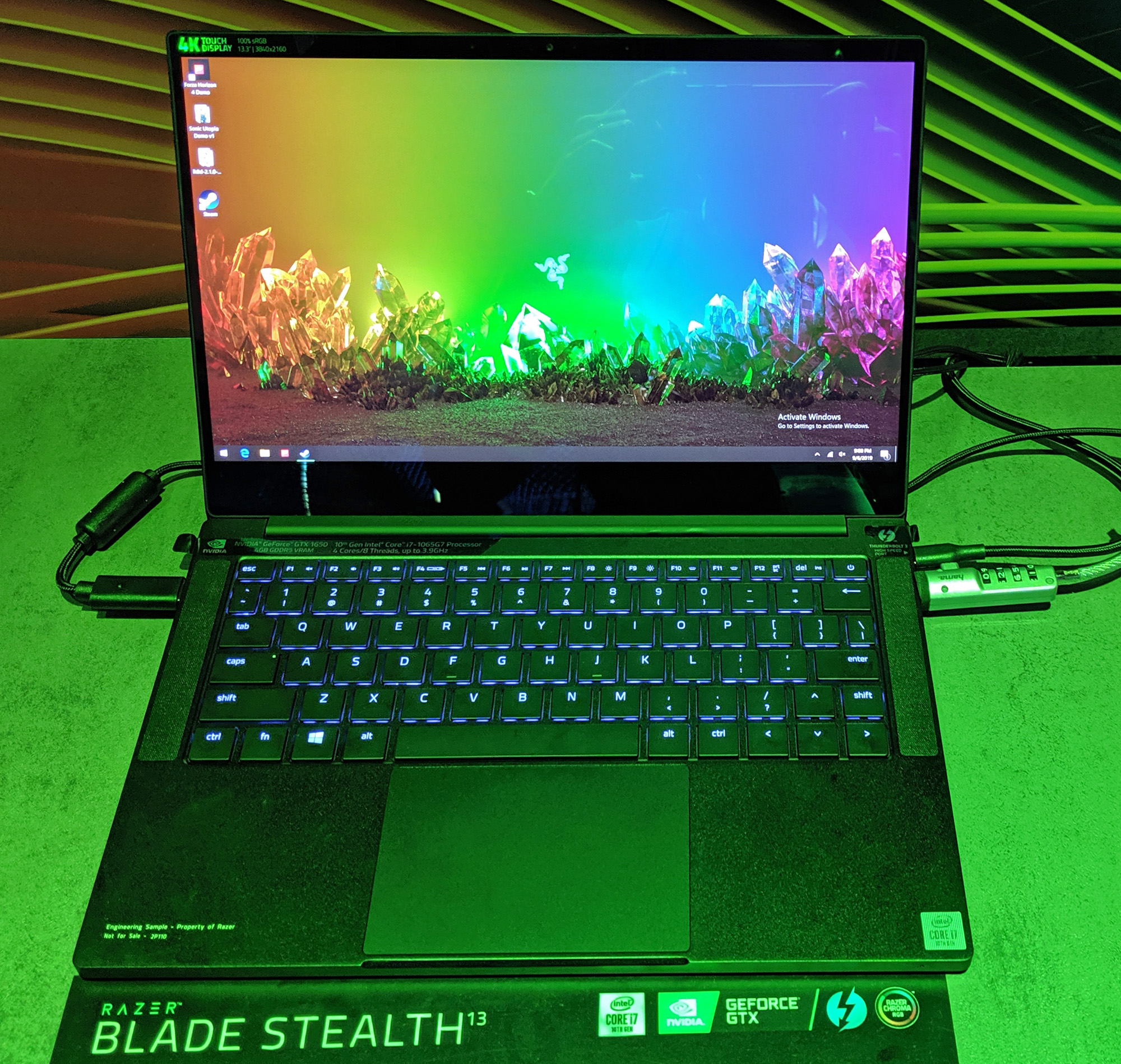 Za tiste, ki ne rabijo nujno Geforcea, bo mogoče boljša izbira osnova konfiguracija, ki bo z 1,36 kg tudi najlažja. V njej je sicer enak procesor, vendar bo deloval pri 25 W namesto pri 15 W, torej bodo zmogljivosti prav tako dobre. Pa tudi Intel trdi, da je vanj vgrajena grafika Iris Plus precej boljša kot pri prejšnjih procesorjih. Tudi ta prenosnik premore Wi-Fi 6, dva priključka USB-C (oba sta lahko za polnjenje, eden pa vsebuje še podporo za Thunderbolt 3), je pa bel, ne črn. Pomnilnika je 16 GB, žal pa je edina opcija za disk 256 GB in za zaslon Full HD. Vsaj nadgradnja diska na nekaj večjega bi bila dobrodošla. Začetna cena za novi Blade Stealth bo v Evropi kar visokih 1680 evrov, z GTX 1650 bo stal okrog dveh tisočakov in z zaslonom 4K še kakšnih dvesto evrov več.