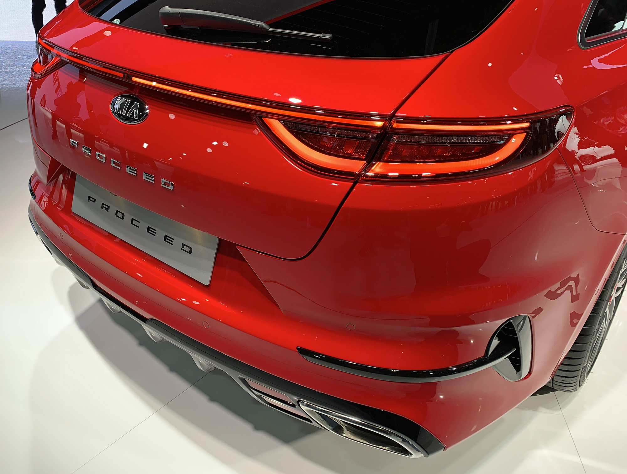 Novi Proceed ni prvi »shooting brake« z dolžino dobrih 4,6 m, Mercedesov CLA namreč kmalu vstopa že v drugo generacijo. Je pa korejski posnemovalec (trenda, ne dejanskega avta, kajti po obliki, vsebini in umeščenosti se zelo razlikujeta) prvi v množičnem segmentu, kajti nemški predstavnik kajpak nagovarja premijske kupce z večjimi postavkami na bančnih računih. V čem pa je sploh poanta, zakaj padajoča linija nekje od sredine strehe naprej? Ker želi dajati drugačen, bolj eleganten, športen, ekskluziven vtis od nerazburljivega karavanskega delavca. V ta poskus vizualnega ugajanja se vklapljajo še »zob« na oknu ob zadnjem strebričku, difuzor, spojler, elementi na sprednjem odbijaču in nižja oddaljenost od tal. Zunanji vtis je nedvomno dober. To pa je tudi proizvajalčev namen, ker Proceed pač igra na čustva, ne na kakšne racionalne argumente, s temi naj bi osvajal Ceed SW.