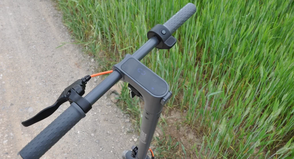 Še enkrat, prvič sem jo pri testu močnejšega modela, bom pograjal aplikacijo. Ne nudi dovolj, da bi bila potrebna še za kaj drugega, kot le nadgrajevanje programske opreme. Delno je tako tudi zato, ker je zaslon na sredini krmilnega drogu dovolj čitljiv in primerno informativen. Podatki, ki jih potrebujete med vožnjo in po njej, so namreč na njem razumljivo prikazani. Ravno tako je preprosto prestavljanje med voznimi načini (vožnja s hitrostjo pešca in nato še tri) in nasploh upravljanje skiroja. Z dvema rokama, kajti kot pri vseh drugih je širina krmila premajhna, da bi sploh lahko razmišljali o kolikor toliko varnem upravljanju z eno roko.