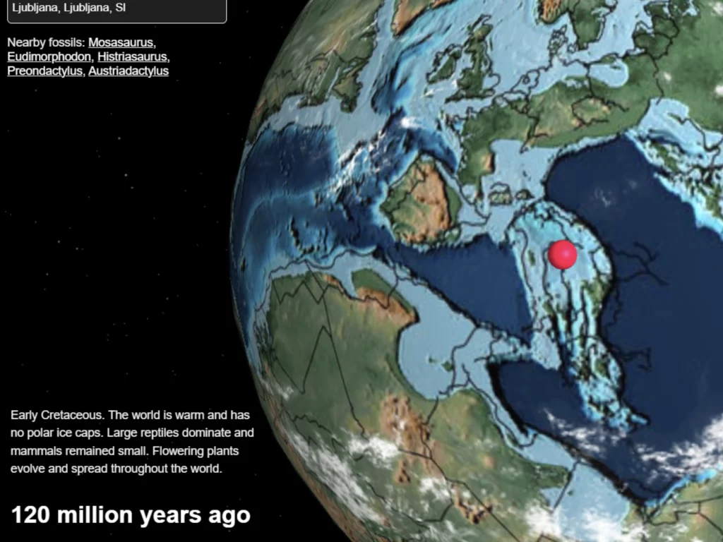 Tretji kamen od sonca je v svoji zgodovini doživel nešteto sprememb, zato si težko predstavljamo, kje je bila nekoč površina naše podalpske državice. Ni pa nemogoče. Po zaslugi interaktivnega globusa, ki sega 750 milijonov let v preteklost.
