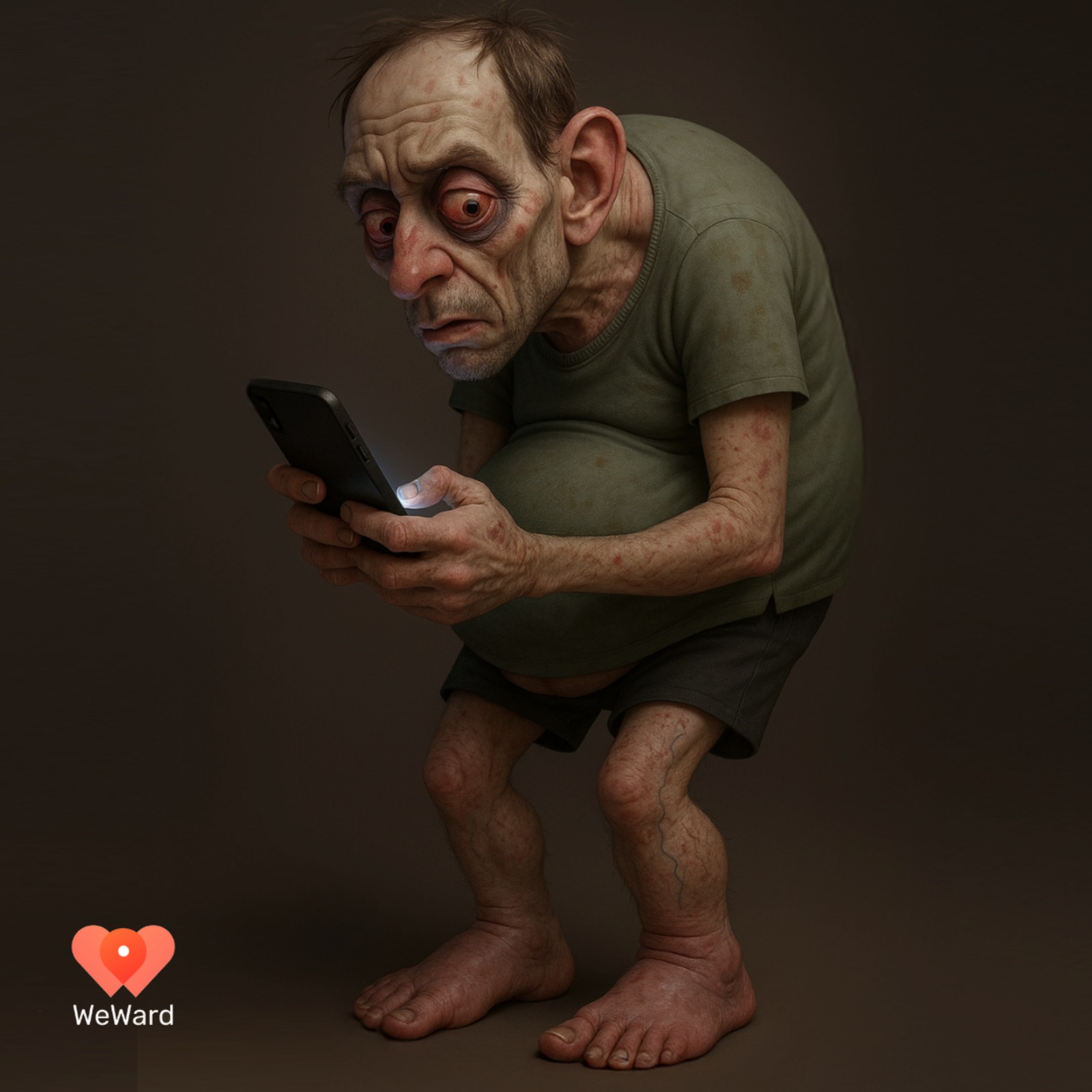 Sam je res grozen. Bolj je podoben Gollumu (Smeagolu) iz Gospodarjev prstanov kot rojenemu ob prelomu tisočletja, ko bo ta star petdeset let. Primerjava je na mestu. Gre za obsedenost z nečim, kar se tako ali drugače pozna na počutju in videzu. Le da smo obsedeni pretežno s telefoni in ne s prstanom mogote, »edinim, ki jim vsem vlada«. Pomislite samo, kako se počutite, ko ste dalj časa ločeni od »najdražjega«.