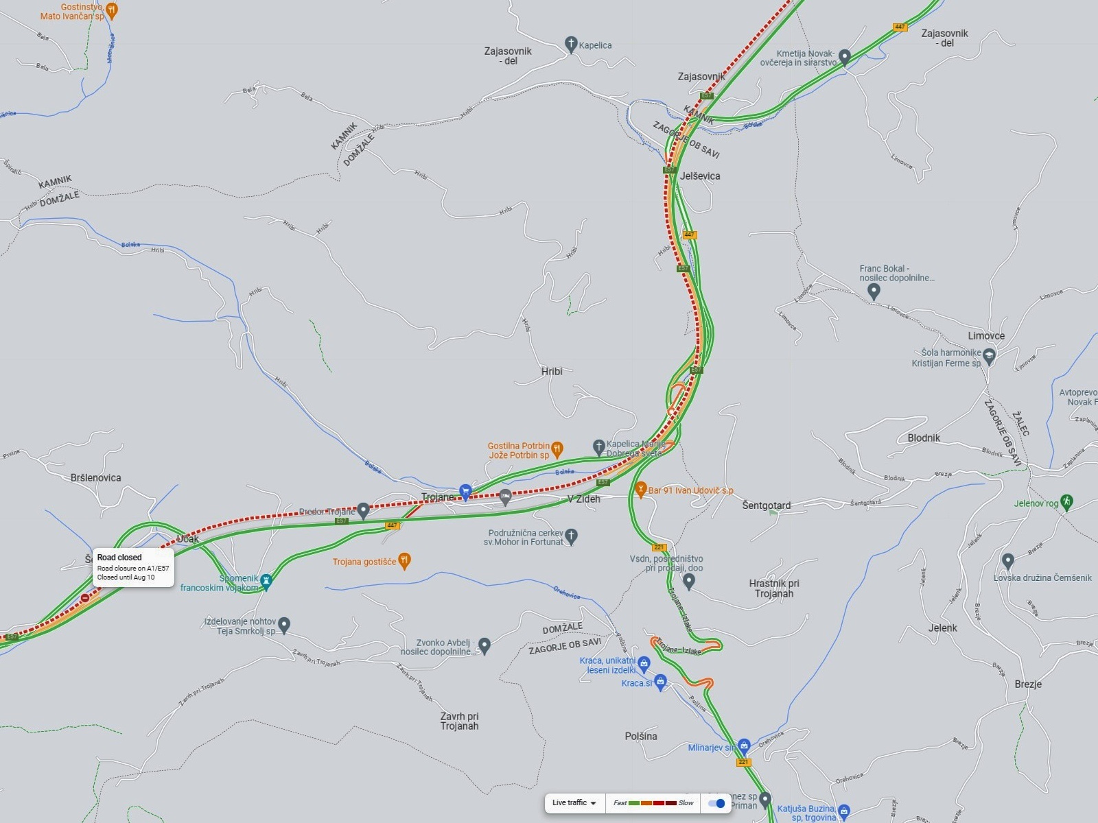 Nekaj dni je priljubljena navigacijska storitev kazala popolno zaporo štajerske ceste avtoceste od priključka Šempeter do priključka Domžale. Koliko vas je zato zavilo na staro cesto prek Trojan?