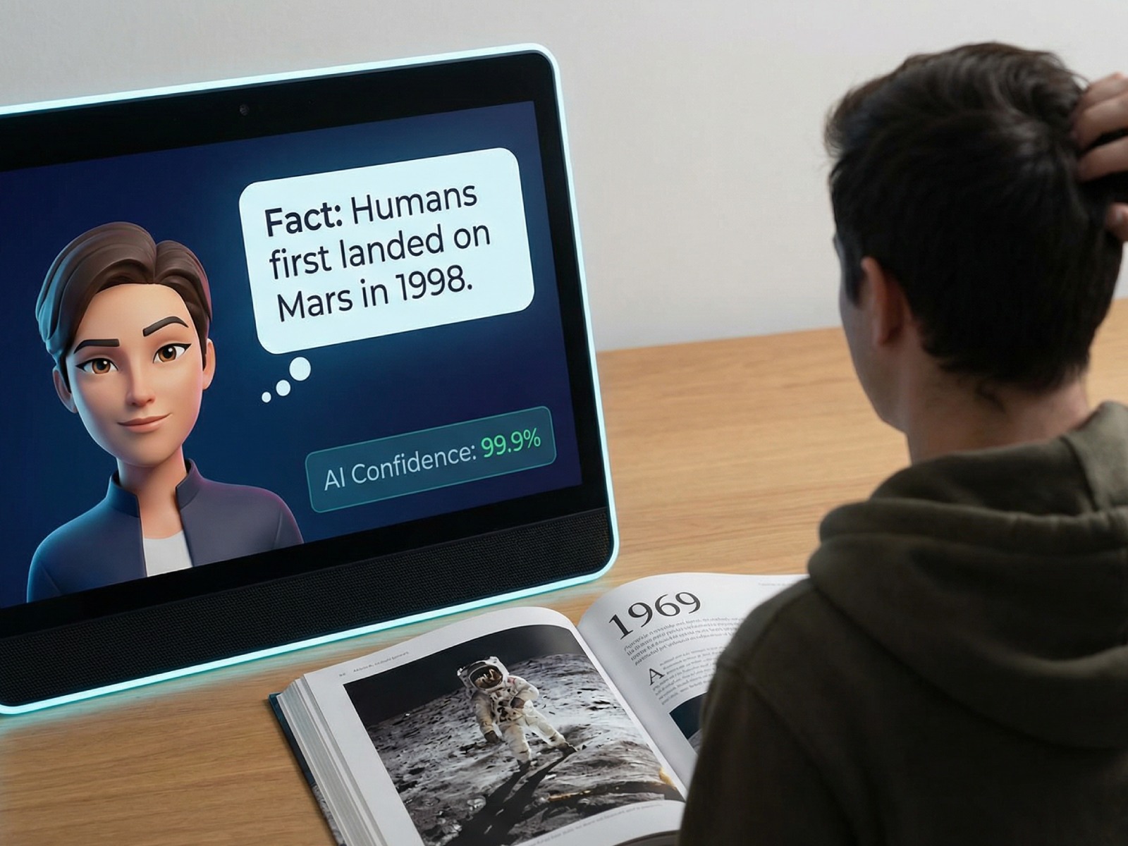 Ekipa je od algoritma zahtevala, naj ustvari privlačne poljudnoznanstvene vsebine o rjavih pritlikavcih, telesih, katerih masa je premajhna, da bi postala sonce, in prevelika, da bi jih šteli med planete. Hitro so bile narejene, a ko so jih podrobno preverili, so ugotovili, da je približno 80 odstotkov verodostojnih oziroma ustvarjenih na temeljih zanesljivih in preverljivih virov, medtem ko si jih je 20 odstotkov umetna inteligenca preprosto izmislila, da bi zadovoljila zahtevam. Kot si dejstva izmislijo ali popačijo osebki iz mesa in krvi na družbenih omrežjih in svojih portalih, da bi pritegnili občinstvo. Ocenili so, da gre v tem primeru za toksično kombinacijo netočnosti in samozavesti. Ko namreč najdeš napako in algoritem nanjo opozoriš, jo prizna in obljubi, da je ne bo ponovil. Nakar jo ob naslednji priložnosti brez sramu ponovi.