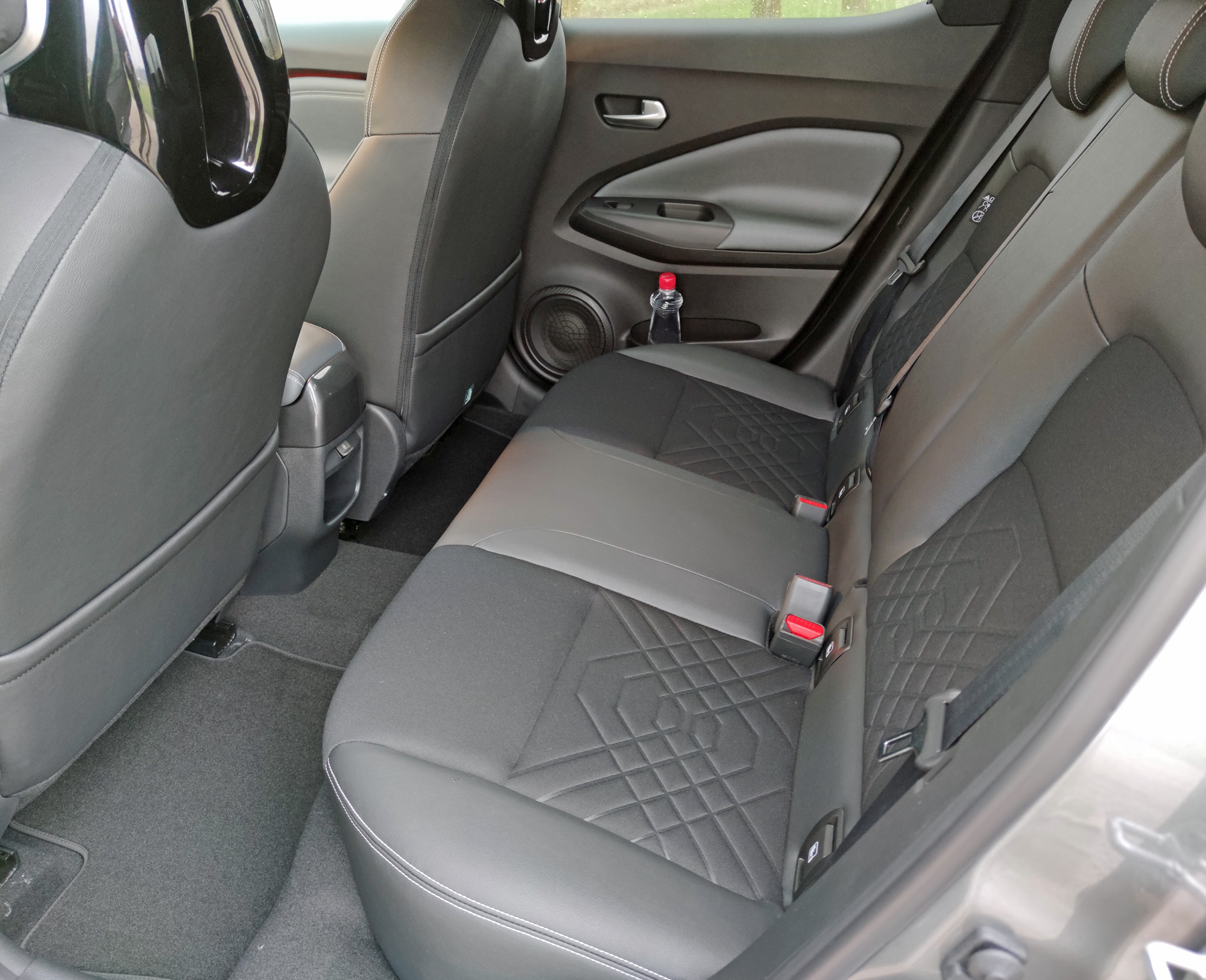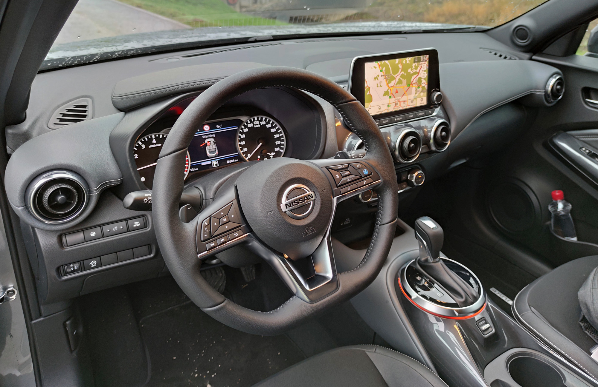 Prirastek v vse smeri – tudi višina in širina sta pridobili po nekaj cm – se najbolj pozna v prtljažniku, ki ga je zdaj 422 l v dveh nivojih, kar je že precej blizu temu, kar ponuja Qashqai in s čimer se ponašajo najboljši med tekmeci. Na zadnji klopi je prav tako bolje, a tam se morda še najbolj pozna, da gre vendarle še vedno za manjši avto. Spredaj pa je napredek prav tako velik, saj prostora dovolj in občutek je prav gosposki. Sedeži so vrhunski, armaturna plošča zanimiva, materiali večinoma delujejo solidni, čeprav je tu in tam še kakšna cenenih rešitev. Če ne bi poznal mer in bi me samo posadili za volan, bi težko uganil, da vozim majhen avto. V tem pogledu je Juke res napredoval in zdaj precej bolje upravičuje svojo ceno.