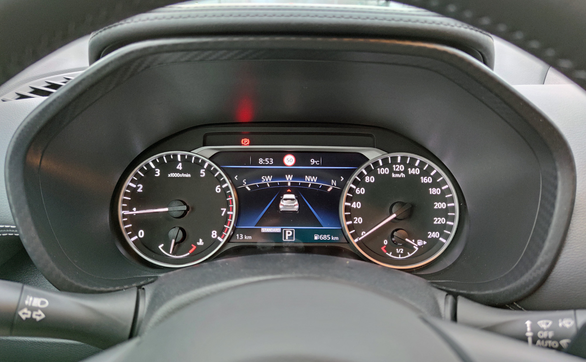 Notri je takoj opazen tudi tehnološki skok naprej. Na sredini je od drugega nivoja opreme (Acenta) naprej osempalčni zaslon s povsem novim infozabavnim sistemom. Stari, ki smo ga poznali iz Qashqaija in Micre, sicer enostaven za uporabo, a po videzu vmesnika in uporabljenih zaslonih že nekoliko staromoden, se je poslovil (so pa ostale enake tipke na volanu). Novi ponuja bistveno več funkcionalnosti, upravljanje določenih zadev z aplikacijo na telefonu, bistveno posodobljeno navigacijo z zemljevidi TomTom in prometnimi informacijami ter možnost uporabe platform Android Auto in Carplay – predvsem bosta zanimivi za tiste, ki ne bodo kupili opreme Tekna, saj je navigacija serijska le pri tej.