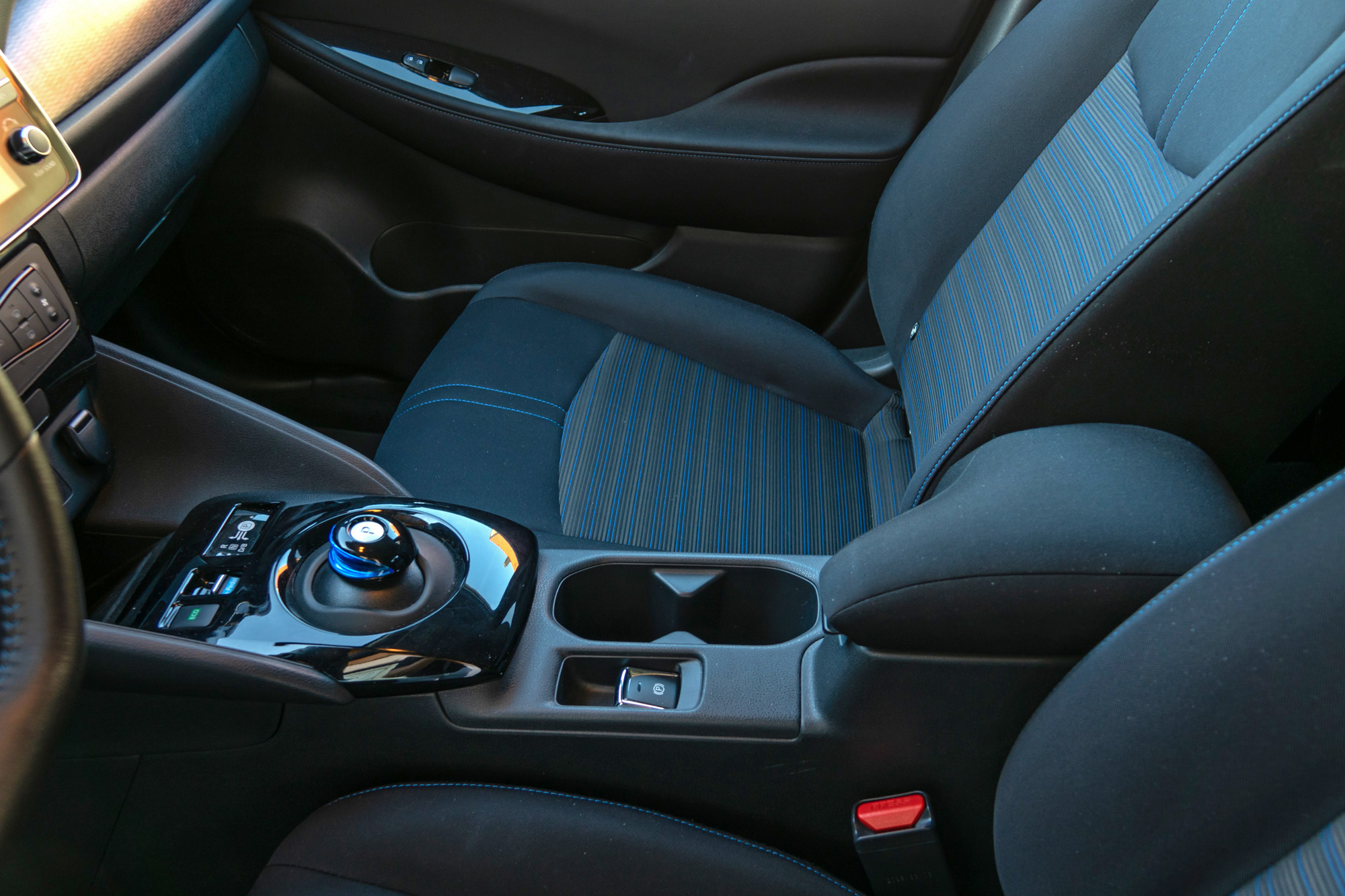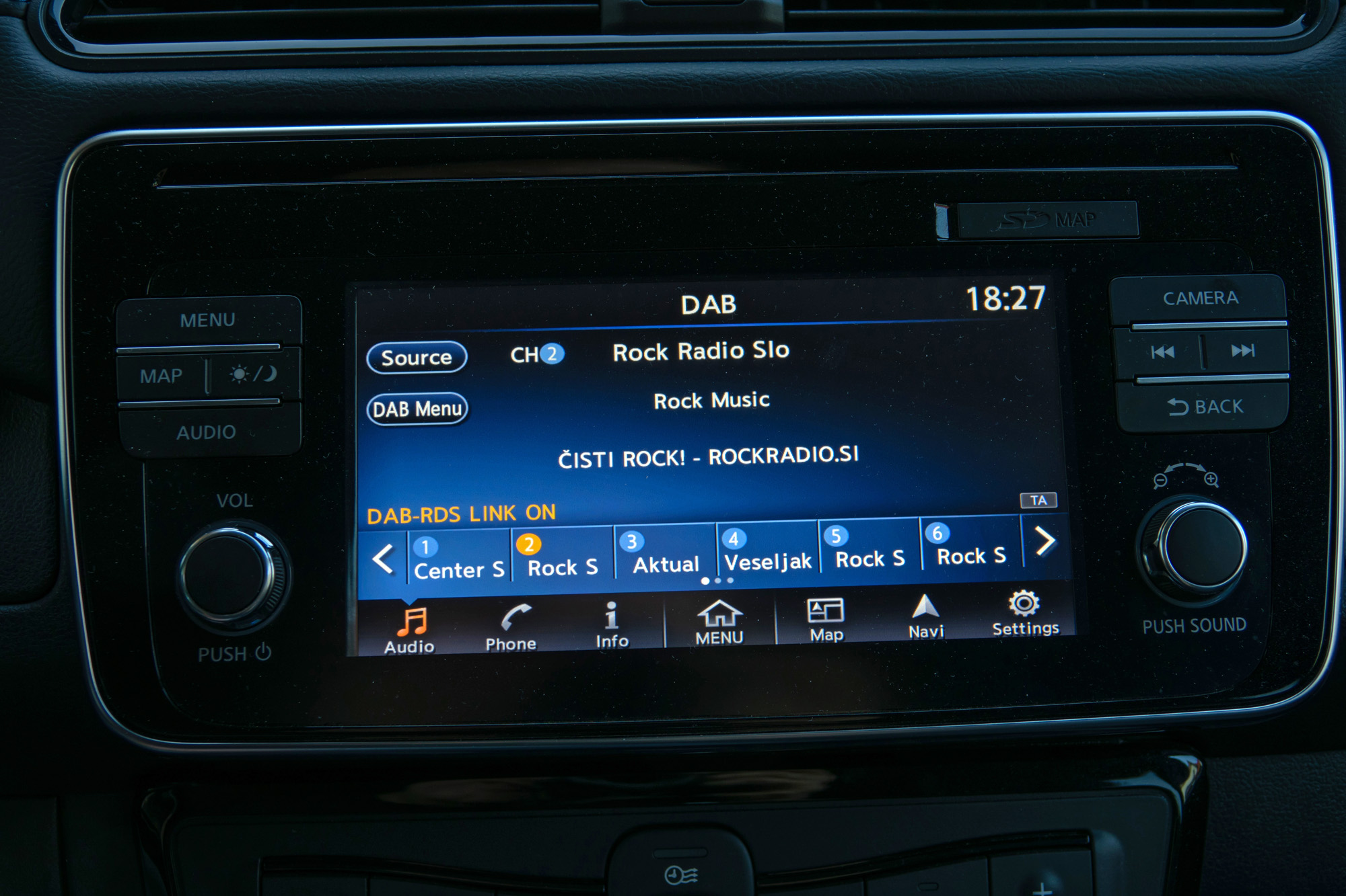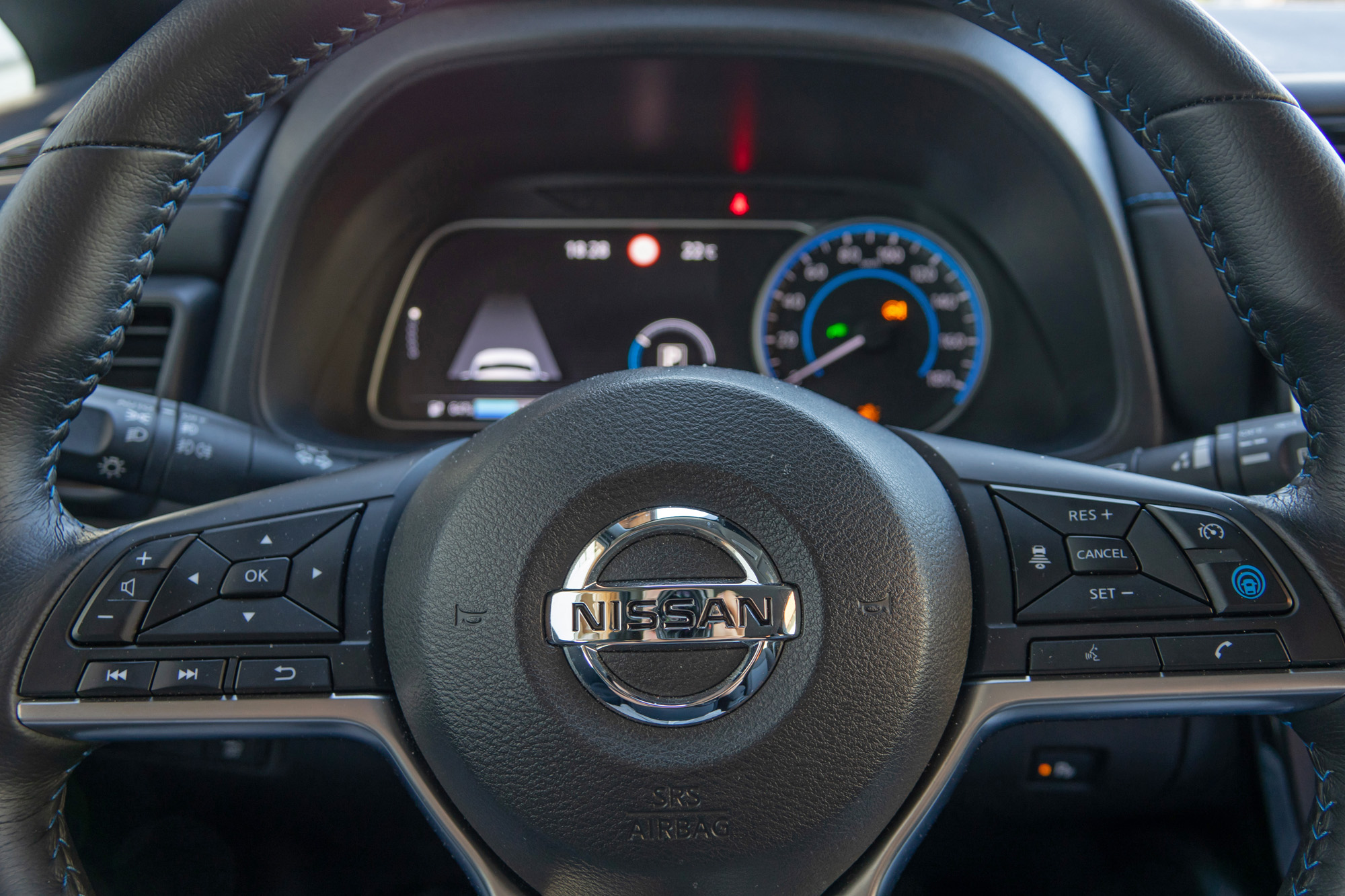 Voznikov delovni prostor je sodoben, a ne pretirava z zasloni. Kazalec za hitrost je analogen, preostali levi del je digitalen. Na njem so prikazane vse pomembne informacije, trenutna moč, doseg in tudi različne prometne informacije v povezavi z zemljevidom, na primer omejitve. Volan ima na levi strani upravljanje z zvočnim delom, na desni krmiljenje tempomata in upravljanje telefona. Sredinski sedempalčni zaslon je namenjen vsem ostalim informacijam, vključno s prikazom zadnje in prednje kamere, ki sta v pomoč pri parkiranju. Prestavna ročica oziroma njen ostanek je seveda elektronska in čisto mirno bi ga lahko nadomestili trije gumbi. Prestav, kot jih poznamo v klasičnem avtu, tu seveda ni, določimo le smer vožnje in rekuperacijo oziroma zaviranje z motorjem ter s tem vračanje energije v baterijo. V normalnem načinu (D) avto zelo malo zavira s pomočjo elektromotorja, v načinu B so pojemki zelo podobni vožnji s klasičnim dizelskim motorjem. Kot večina električnih avtomobilov ima tudi Leaf eko-način, ki omeji moč in s tem malo privarčuje ter podaljša doseg. A tista najboljša stvar je po Nissanovo poimenovana e-pedal. Ko vklopimo to možnost, lahko avto praktično vozimo le s pedalom za moč. Če ga spustimo do konca, se bo avto začel ustavljati še z rahlo močnejšim pojemkom kot v načinu B in na koncu tudi ustavil. Idealno za mestno vožnjo oziroma počasno vožnjo v koloni. Poleg tega e-Pedal drži avto na mestu tudi na hribu in če ni nepredvidenih dogodkov, si lahko pajek mirno uredi domovanje na pedalu za zavoro. Leaf ima tudi radarski tempomat, za slednjega lahko rečemo, da je danes praktično nujen dodatek za vsak avto. A tu nas ni preveč navdušil, ko je avto pred nami zavil v ovinek in ga je radarski “vid” izgubil, saj je tempomat pospešil, kar tik pred ovinkom ni ravno najboljši občutek. Preizkusni Leaf je imel tudi možnost “ProPilot”, ki delno omogoča samostojno vožnjo, a nam je ta deluje le v »idealnih« razmerah, pogosto smo bili omejeni zgolj na omenjeni tempomat in klasično opozarjanje pred menjavo voznega pasu. Drugače pa je vožnja z avtom zelo tekoča, “kolcanja”, kot smo ga vajeni iz klasičnih avtomobilov ni. Pospeški so spodobni, v slabih osmih sekundah pride kazalec za hitrost od 0 do 100 km/h, pri 62 kWh različici na račun močnejšega motorja še nekaj desetink sekunde hitreje. Lega v ovinkih je zelo nevtralna, večje mase praktično ni občutiti. Pohvalimo lahko tudi vzmetenje, ki odlično pobira cestne neravnine in jih ne prenaša na samo ogrodje.