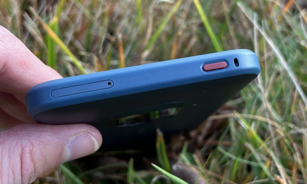 Podjetje HMD Global letos bruha novosti, potem ko se je lani kar malo potuhnilo. Že pred meseci smo testirali klasičen model X20, ki je pustil mešane občutke, in tega so z določenimi spremembami »preoblekli« v bolj odpornega, trpežnega XR20. Res ima tako masiven oklep, da si je težko predstavljati, kaj bi bilo treba početi s tem telefonom, da bi se mu kaj resnega zgodilo. Seveda se lahko na robovih plastika opraska, a to bo verjetno tudi vse. Srednji del stranic je oblikovan tako, da navidezno »razkriva« notranji del ogrodja, kar pa je seveda zgolj dizajnerski trik. Spodaj sta, kot pri večini tovrstnih telefonov, luknjici za pripenjanje zanke, ki jo nekateri še vedno uporabljajo, da imajo telefon obešen okrog zapestja. Zraven je izhod za slušalke (3,5 mm), kar je konec l. 2021 podobno neobičajno, na zgornji strani pa je rdeča tipka, ki ji je mogoče nastaviti številko za klic v sili. Zanimive sta odprtini za mikrofona, saj sta večji kot običajno. A pod njima je še nekaj praznine do luknjice. Najbrž gre za kakšen način odvajanja vode stran. Telefon je uradno odporen po standardu IP68. Plastično hrbtišče ima hrapav vzorec, kar daje soliden oprijem. Stranske tipke so dokaj trde, nepričakovana je tista na levi, ki je namenjena priklicu navideznega pomočnika. Na Nokiah pač teče skoraj Googlov Android (HMD je verjetno še zadnji preostali relevanten proizvajalec v programu Android One).