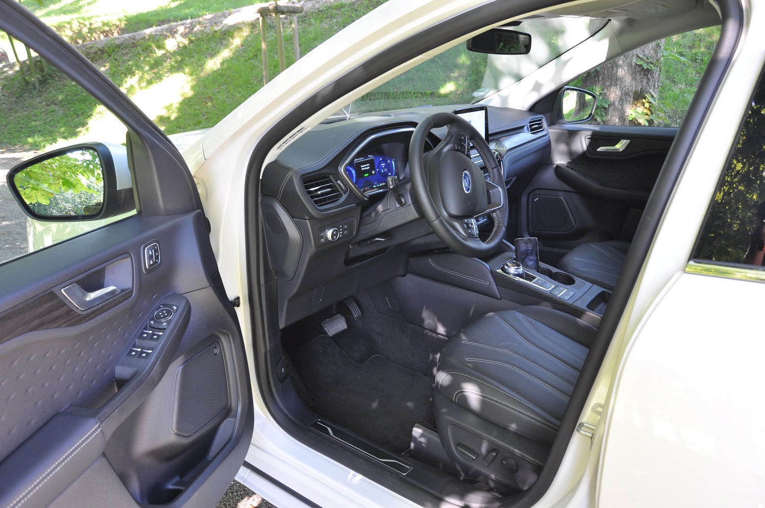 Prenovljena pa je tudi notranjost, kjer pričakovano v središču armature kraljuje velik zaslon infozabavnega sistema. Armatura je ravnih linij, morda manj »odsekana« kot v nekaterih drugih vozilih in sestavljena iz več »plasti«, ki ji dajejo zanimiv videz. Prostora med sedeži je več kot v prejšnjih generacijah, velja za prednje in predvsem za zadnje sedeže, ki jih lahko premikate za 15 centimetrov naprej in nazaj. Prtljažni prostor ima prostornino 645 litrov, to pa velja tudi za priključni hibrid. Na voljo je sicer še cel kup dodatne opreme, med drugim tudi gretje zadnjih sedežev, ki so v paketih ali jih lahko izberete po želji. Tudi pri Kugi za volanom v boljši izvedbi ni več klasičnih merilnikov, saj tudi tam kraljuje velik 31- centimetrski digitalni zaslon, katerega prikaz si nastavite po želji.