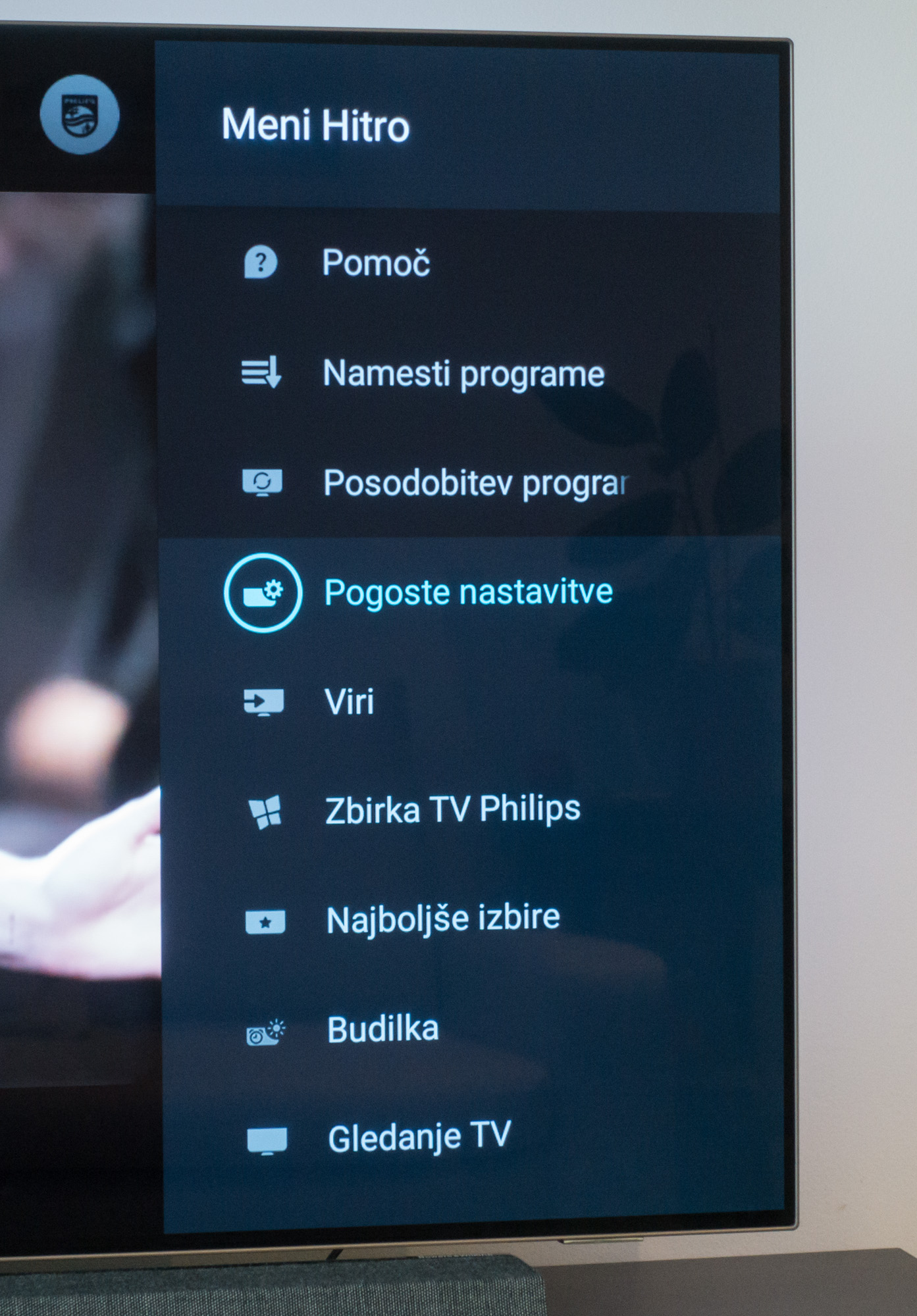 O sliki smo večino v bistvu že povedali pri testu predhodnika, kajti velikih sprememb nov model ni prinesel. Sam LG-jev panel je malenkostno izboljšan in tudi obdelava slike je menda doživela nekaj napredka, vendar se pri večini vsebin tega v resnici ne da opaziti. Tako velja, kar že ves čas pišemo za televizorje OLED in za primerke z značko Philips. Barve so živi, nasičene, a ne pretirano in predvsem bolj naravne kot jih ustvarijo LCD-ji. Še najbolj izstopa rdeča, a nobena ni pretirana ali preveč moteča. Črnina je seveda odlična in kontrasti tudi, svetilnost pa bo za večino zadostna, a ni vrhunska. Kot vedno pri Philipsih se je treba malo poigrati z nastavitvami slike, predvsem z »izboljšavami«. Splača se zmanjšati ostrino in nekoliko omiliti popravljanje kontrasta ter šuma, saj potem vse skupaj izpade bliže realnosti. Resda je včasih nekoliko več šuma, kot bi ga pričakovali, a s tem ni nič narobe, kajti povsem polikana slika pogosto deluje bolj umetno. Še posebej običajne televizijske vsebine so res lepše kot na LCD-jih, česar se gledalec najbolj zave, ko se spet usede za kakšnega. Na voljo je nekakšen HDR za vsebine, ki sicer niso posnete v tem načinu, to pa poudari barve, kontraste in svetilnost, in verjetno bo rezultat marsikomu všeč. Ena od konkretnih novosti je podpora standardu za HDR Dolby Vision, ki se pridružuje že prej podprtemu HDR10(+). Določene vsebine na Netflixu so že s tako sliko in izgledajo odlično, nimam pa primerjave, kakšne bi bile v načinu HDR10. Mislim pa, da je še možnost za napredek in da je ta v zadnjem letu nekoliko zastal. Iz res dobrega vira določeni konkurenčni modeli OLED kot tudi tisti s kvantnimi pikami znajo izvleči primerljivo ali celo lepšo sliko. Malce zmoti tudi dejstvo, da je pri objektih, ki se hitro premikajo čez zaslon, dober primer so smučarski skakalci ali kakšni drugi športniki, pogosto še vedno viden obris, nekakšna senca, kljub vsemu govoru o napredku pri prikazu hitrih prehodov.