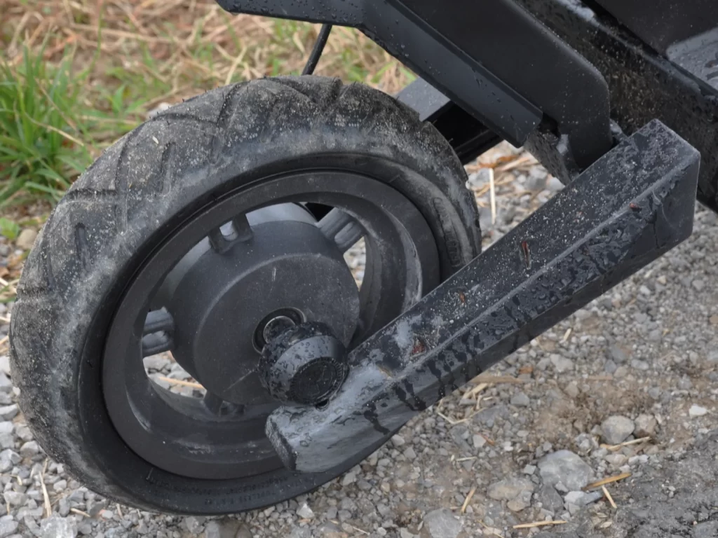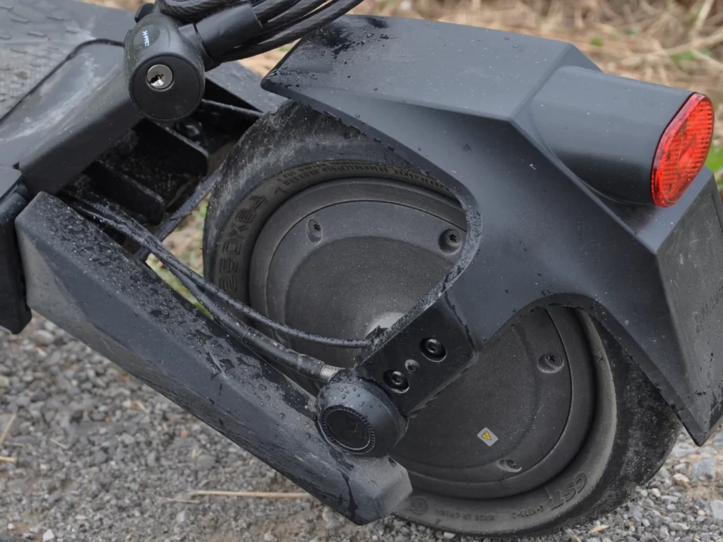 Navee S60 ima običajnejši električni motor in ne motorja z reduktorjem, kakršnega ima model S65, kar prinese prednosti in slabosti. Prednost je povrnitev energije (rekuperacija) med zaviranjem in vožnjo po klancu navzdol ter slabosti manjše zmogljivosti med vožnjo navkreber. Izdahnil je na zadnjem res strem klancu vzpona na Toško čelo (20-odstoni naklon). Ni mi ostalo drugega, moral sem se obrnil nazaj, saj nisem imel nobenega namena prehoditi zgolj nekaj metrov. Test je pač test. Ko se skiro ustavi, ga je konec.
