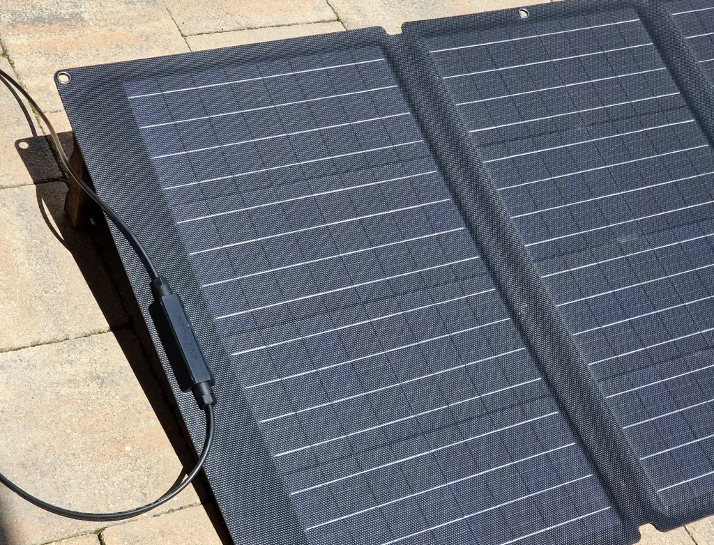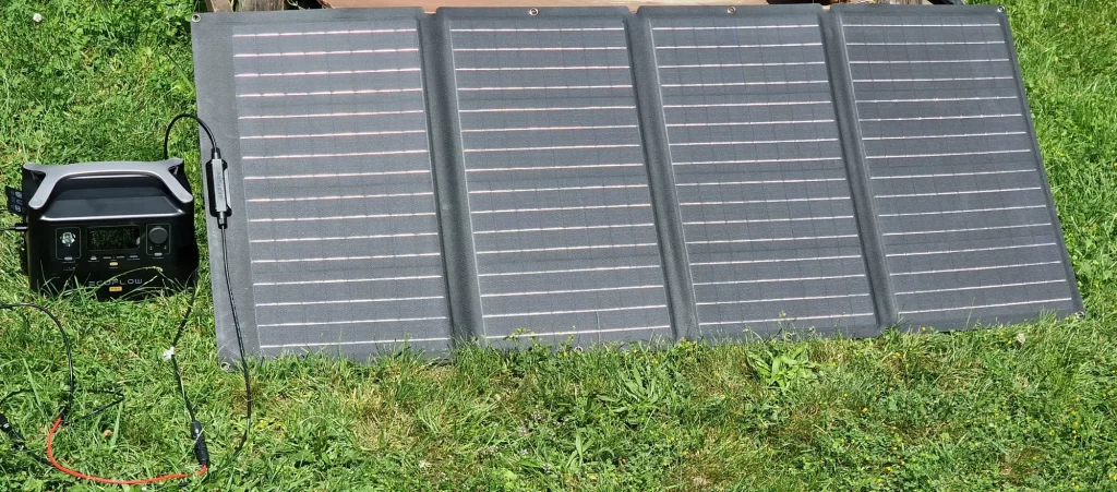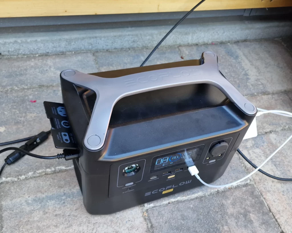 Polniti je zadevo mogoče na tri načine. Iz vtičnice, z enakim kablom, s kakršnim priklapljamo denimo namizne računalnike, gre najhitreje. Takrat se tudi steka energija notri s približno 600 W in polnjenje prazne bi trajalo približno uro in štirideset minut. Ta način je verjetno najbolj smiseln takrat, ko se odpravljaš nekam, na določene lokacijo, kjer ni električnega omrežja, a bi vseeno rad(a) imel elektriko. Drugi način je polnjenje v avtomobilu na poti do tja, prek priključka za enosmerni tok, toda ta opcija je počasnejša. Tretja možnost pa je polnjenje s sončnimi celicami, ko je reč nekakšna mini elektrarna, in to smo uporabljali večino časa. Je nekako najbolj smiselna, če to uporabljamo tam, ker kjer ni omrežja. Uporabljani panel je na močnem soncu dajal nekje med 120 in 140 W, če je bil postavljen pod pravšnjim kotom, za kar je treba najti oporo, kajti vgrajenega podstavka nima, kot denimo paneli znamke Jackery. V idealnim razmerah tako baterijo napolni v približno šestih urah, a običajno traja dlje, saj se vmes sonce malo skrije za oblake, nekje nastane senca in je treba celice premakniti in podobno. Ko pa moč pade na 50 W ali manj, je učinek na odstotke napolnjenosti bolj boren. Enako, če vmes polnimo telefone in prenosnike ali kaj drugega.