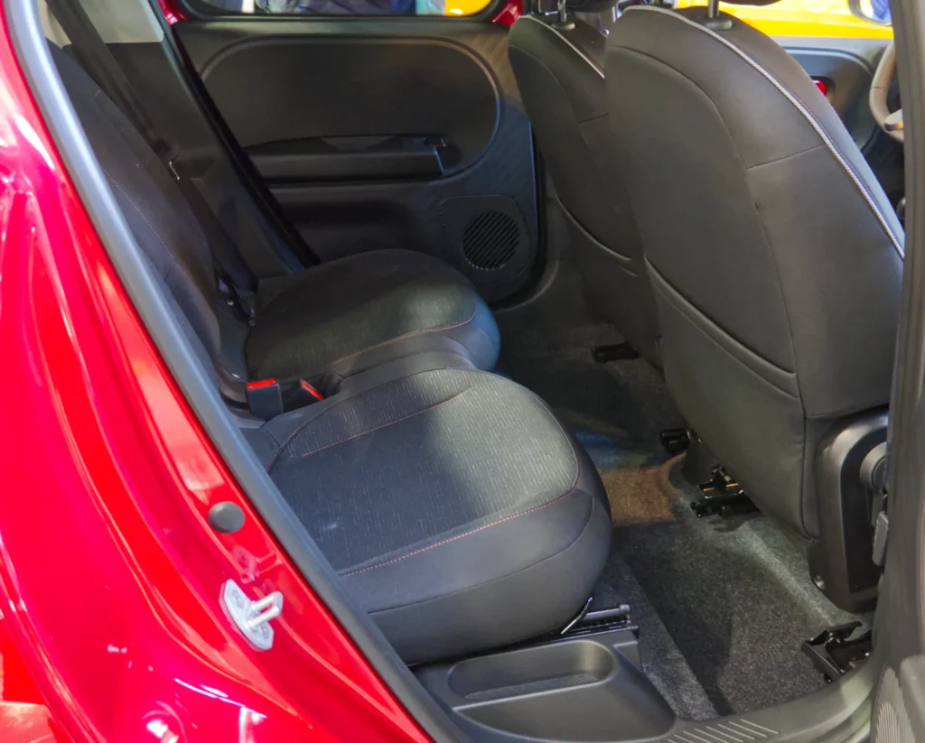 K zadnjim sedežem, ki sta znova pomična (!), in v prtljažnik sem uspel pokukati zgolj na hitro, in čeprav nekateri poskušajo ustvarjati vtis, da ima Twingo celo več prostora od Petke (od slednje je res le za nekaj cm krajši), bi to težko potrdil. Sedelo se bo lahko dokaj razkošno, če bosta sedeža pomaknjena dovolj nazaj, a takrat bo v prtljažniku zelo malo prostora. Iz izkušenj s Twingom druge generacije bi rekel, da je to lahko zanimiv avto za tričlansko družino, ki en sedež odmakne toliko nazaj, da otrok brez težav sedi, drugega pa potisne povsem naprej, da pridobi kar največ prtljažnega prostora.